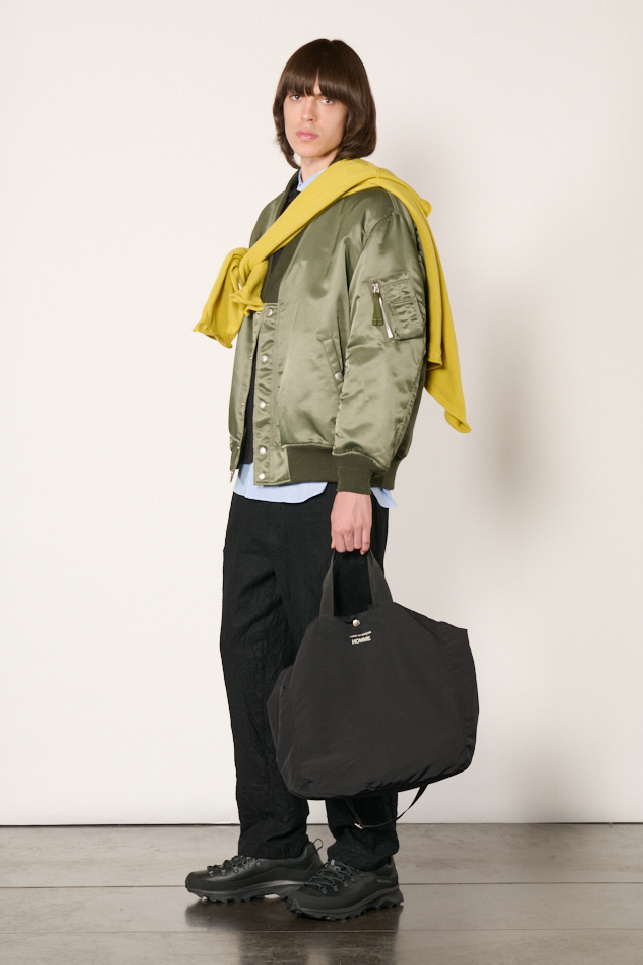 Bomber jacket from Comme des Garçons Homme in khaki, made from nylon and cotton.