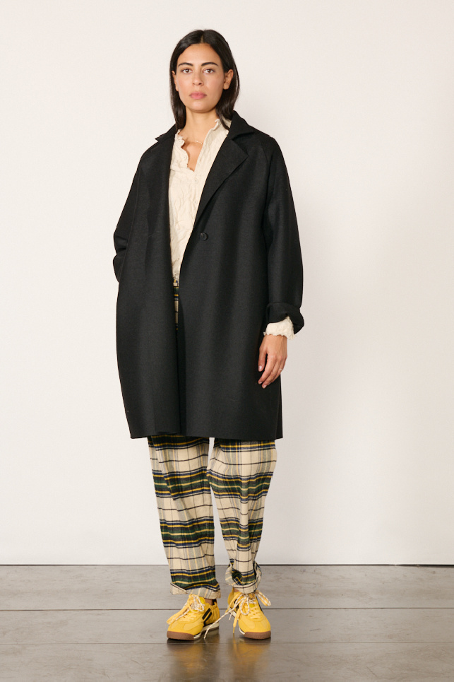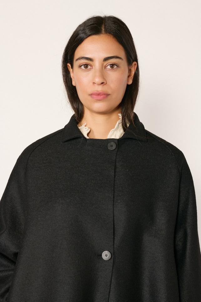 Raglan black wool coat from the brand Harris Wharf London.