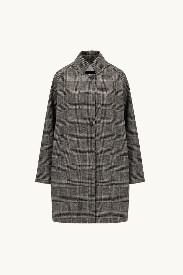 Raglan wool coat with a Prince of Wales check pattern from the brand Harris Wharf London.