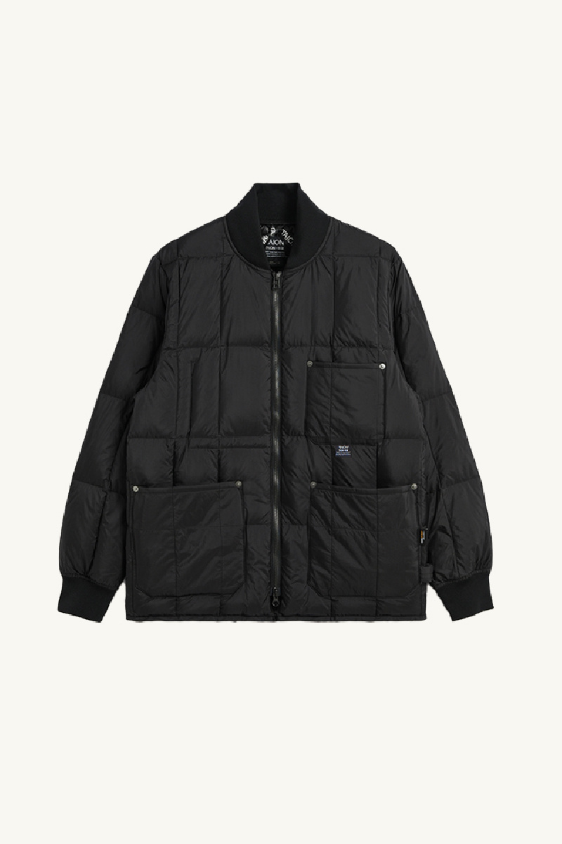 Black Quilted Work Jacket with 800FP down and feather padding, from Taion.