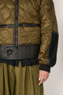 Quilted nylon jacket with sheepskin lining and leather inserts, by Giorgio Brato.