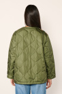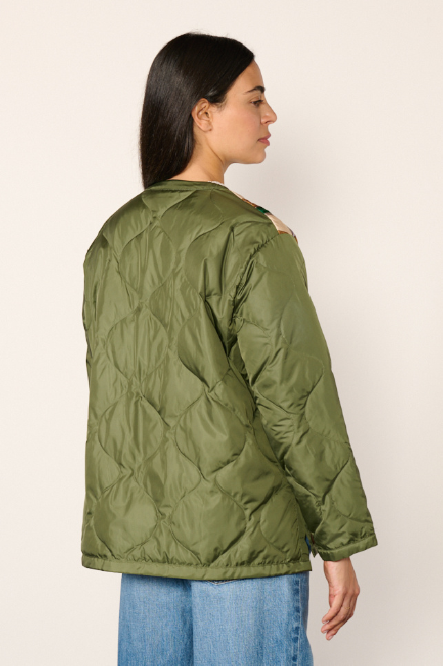 Reversible quilted jacket in khaki, padded with down and feathers, by Manipuri.