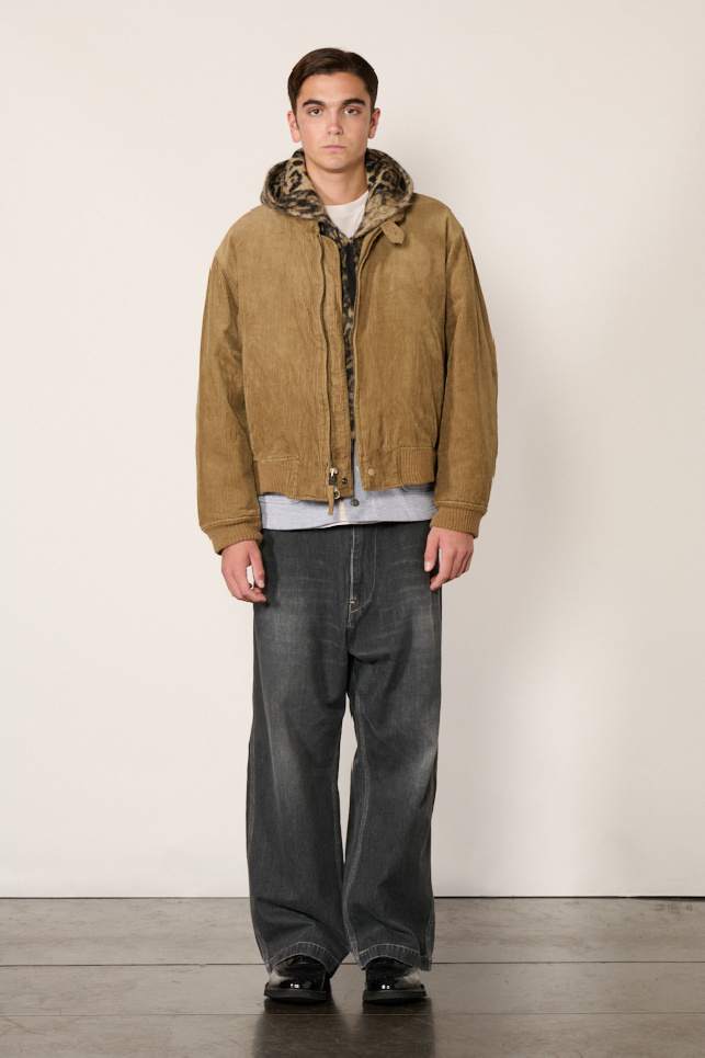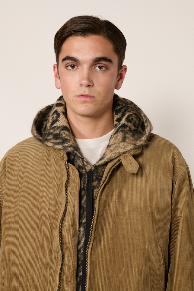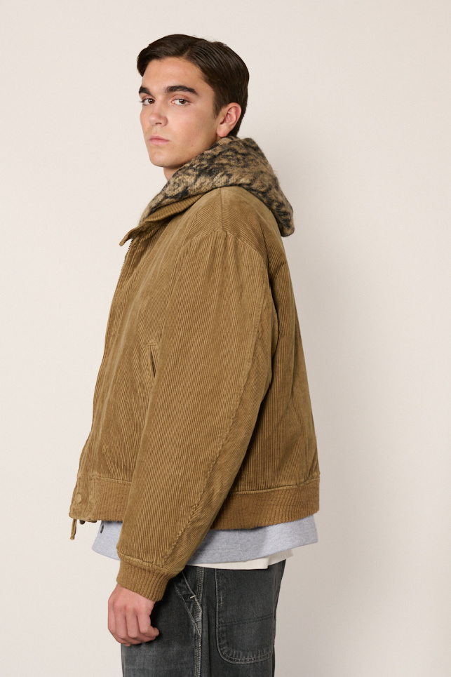 LL jacket in khaki corduroy, crafted from cotton by Engineered Garments.
