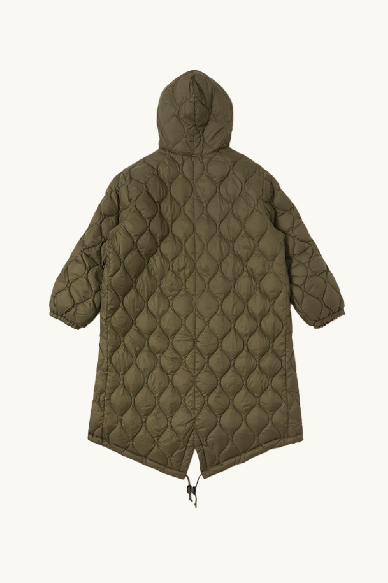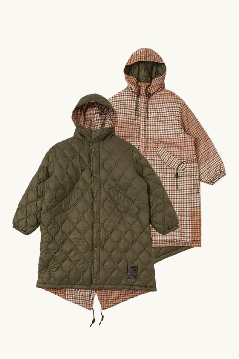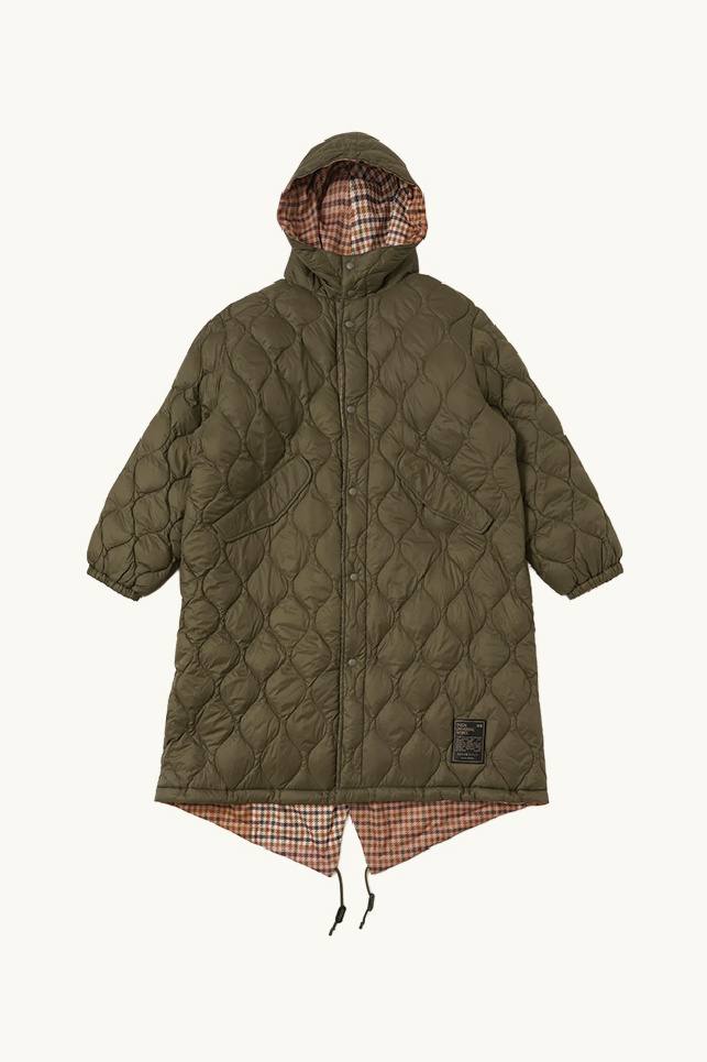 Olive Quilted Reversible Parka, born from the collaboration between Taion and Universal Works.