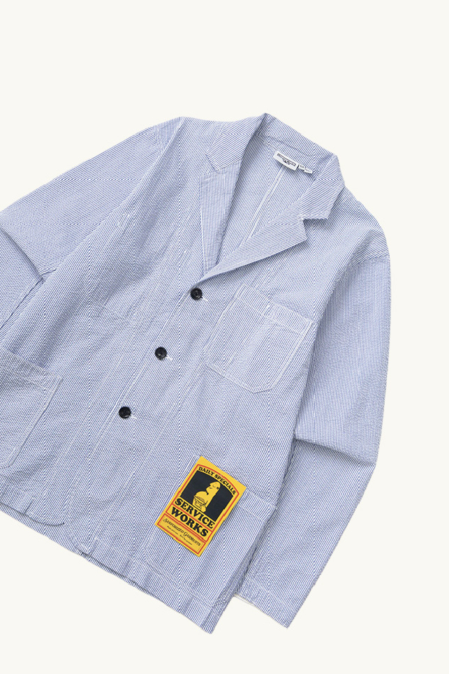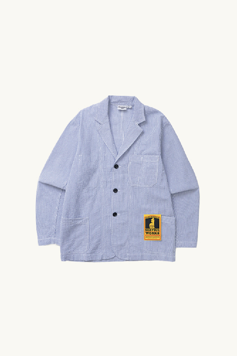 Jacket in white and blue textured cotton from Service Works.