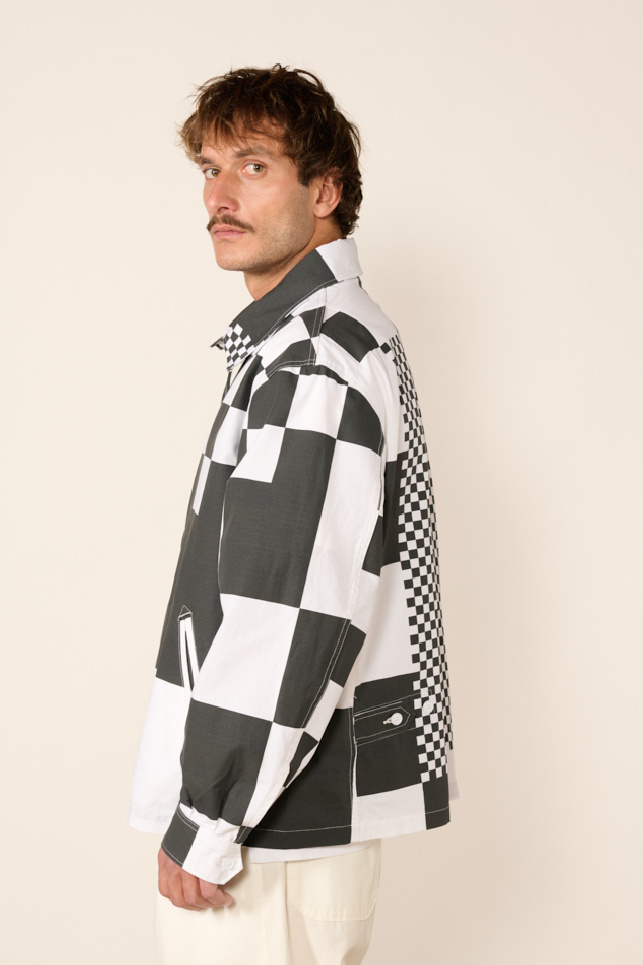 Claigton jacket made of ripstop cotton, unlined, with different white and black checks, from the brand Engineered Garments.