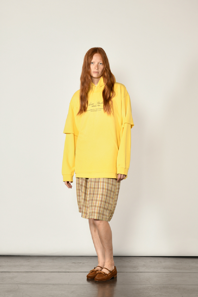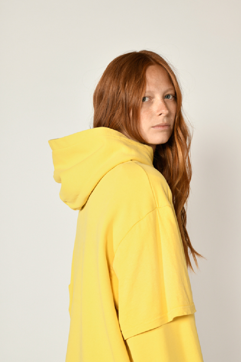 Yellow hoodie made from organic double-layer cotton by Acne Studios.