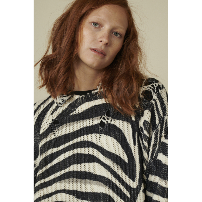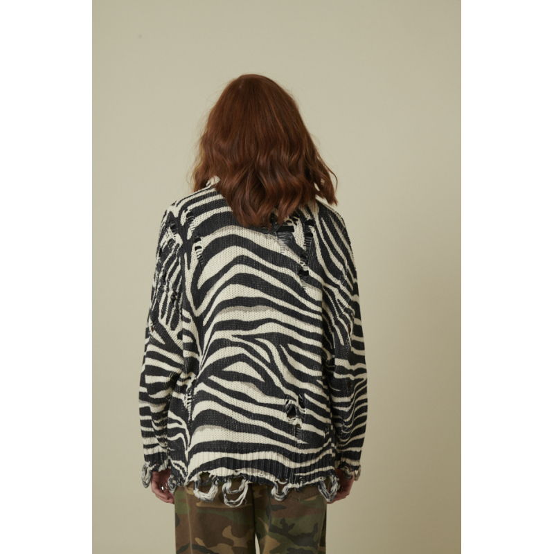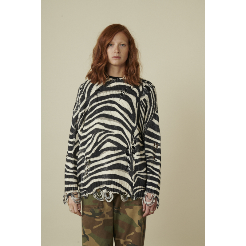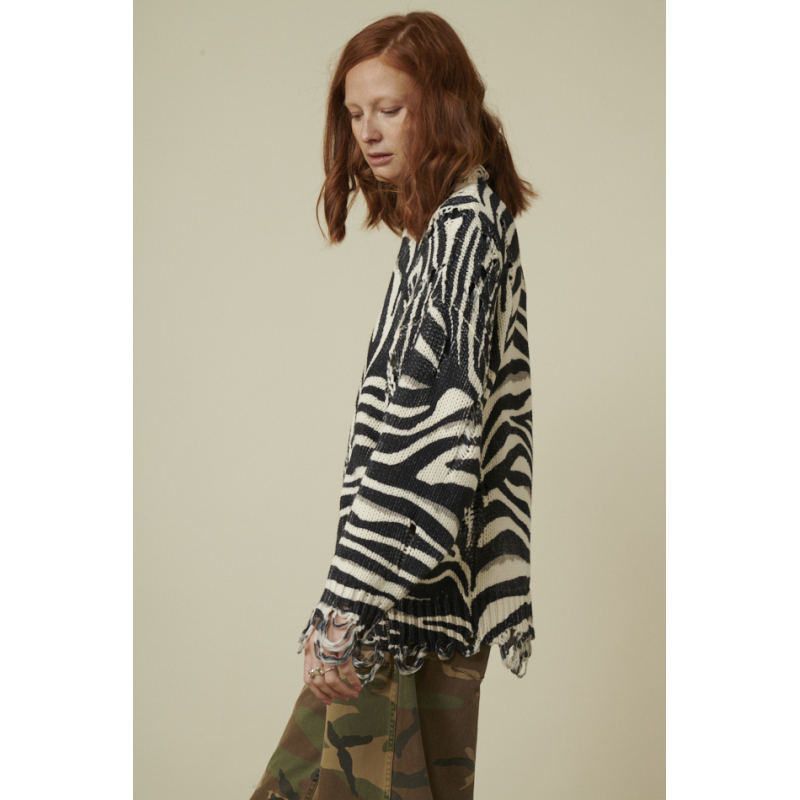 Oversized black and white zebra print jumper in hole-effect destroy knitwear from R13.