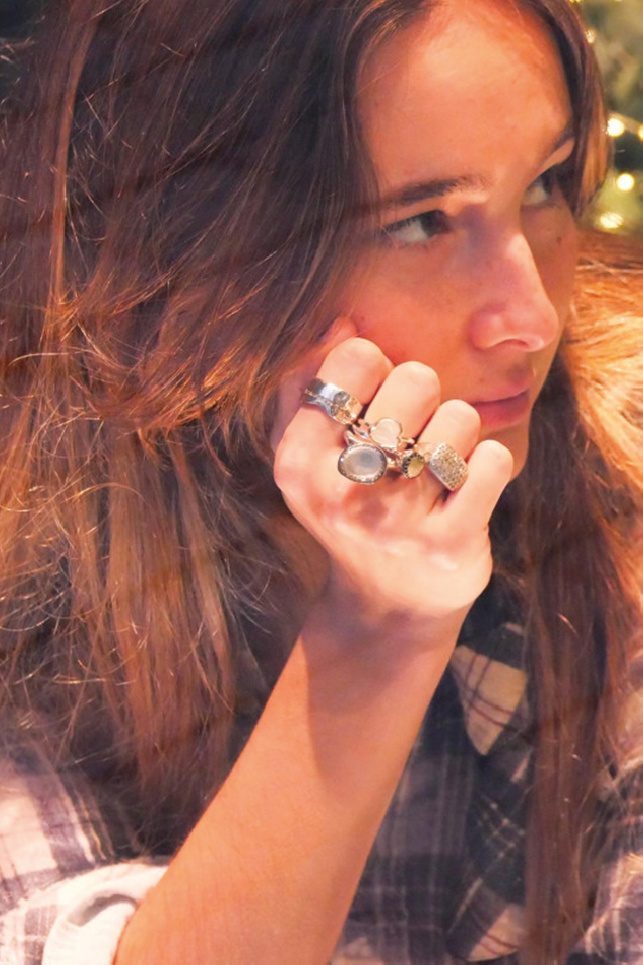 Naida B Dia IB ring in sterling silver set with glazed white diamonds. Rosa Maria jewelry is a bold blend of ethnic inspiration and raw industrial spirit.