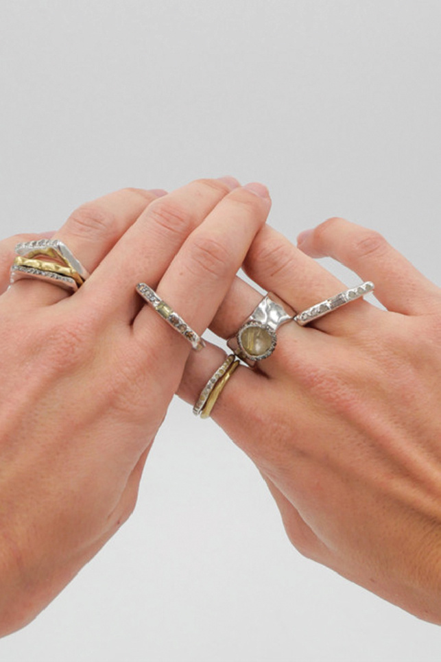 Rosa Maria Riny 1 Dia ring in silver set with diamonds. Rosa Maria jewellery is a bold blend of ethnic inspiration and raw industrial spirit.