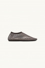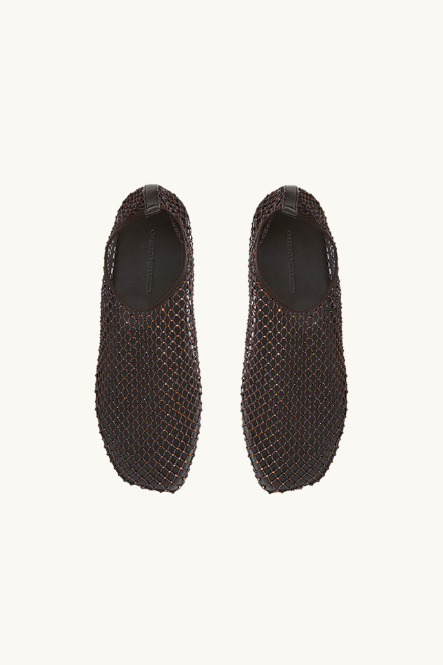 These slip-on ballet flats embody the refinement of Italian craftsmanship. Made from soft, lightweight mesh, they are adorned with brown handmade glass crystals.