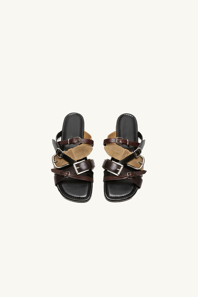 Blended calf leather bridle sandals in brown, by the brand Acne studios.