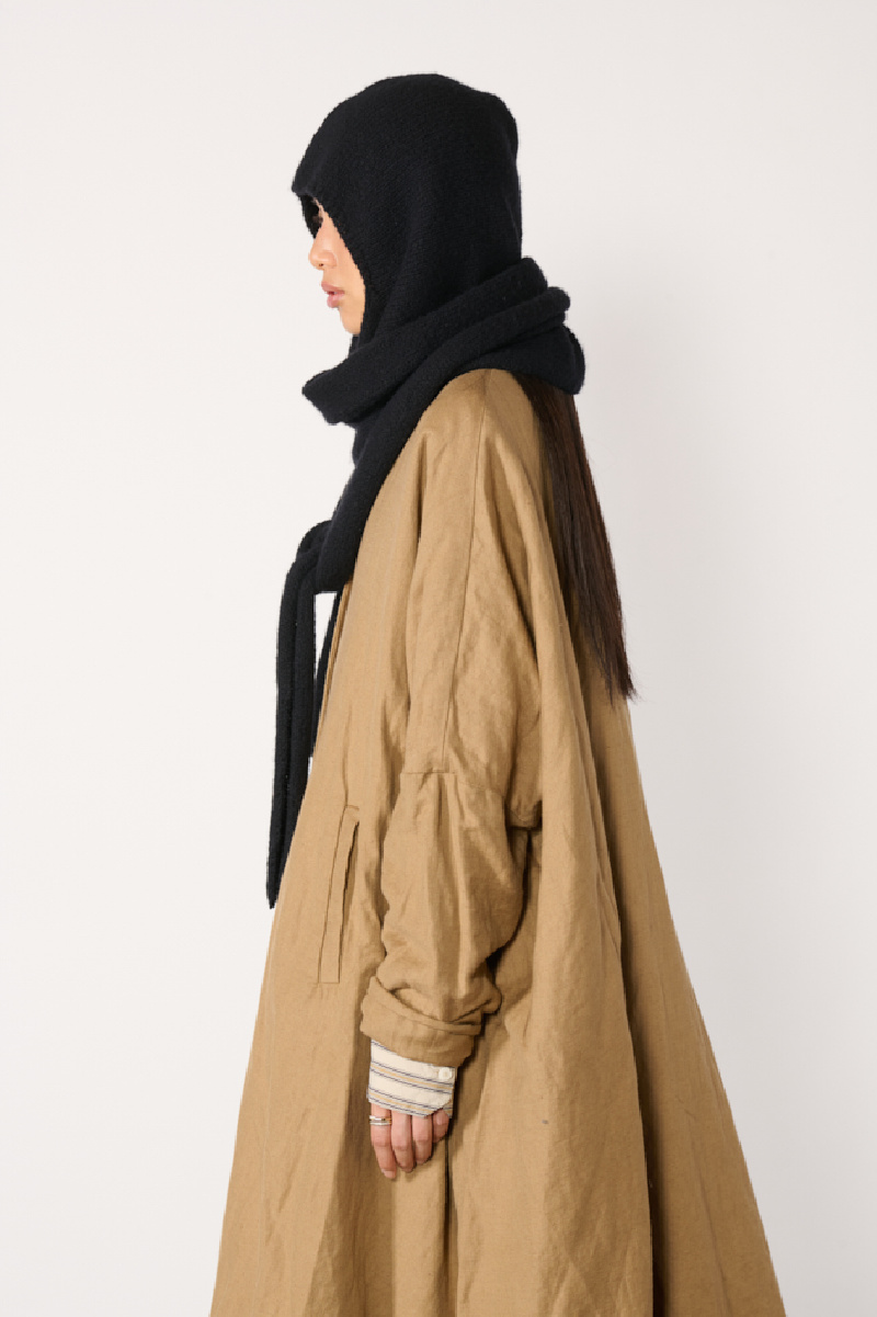 Hooded scarf, knitted in black merino wool and cashmere - gauge 3, from the Casey Casey brand.
