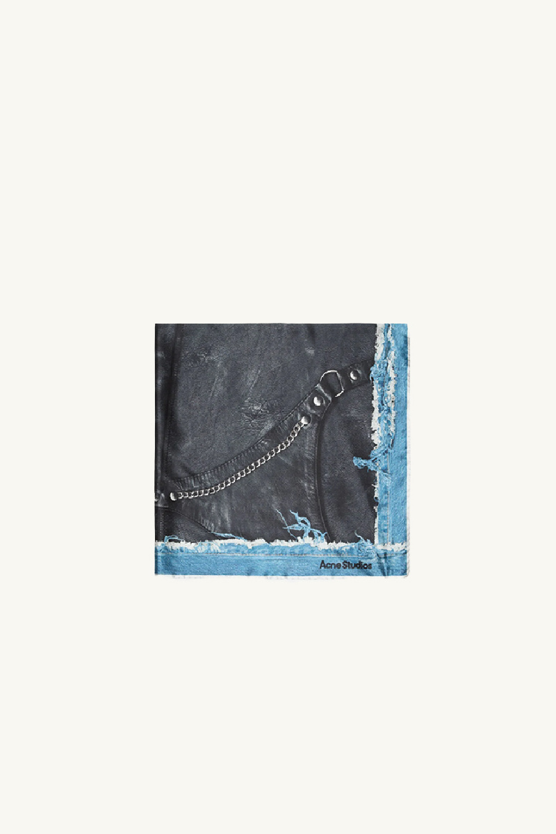 Square scarf made from lightweight silk with a trompe l'oeil denim and chain print, from Acne Studios.