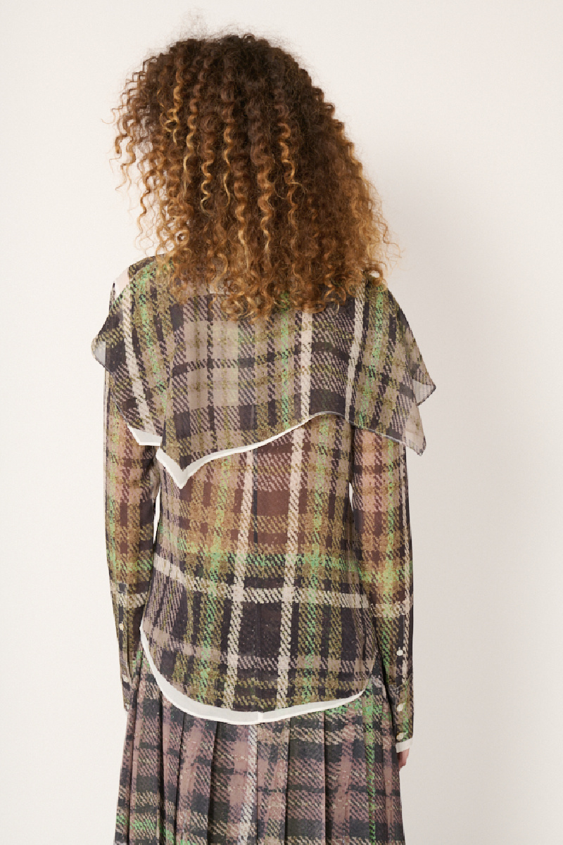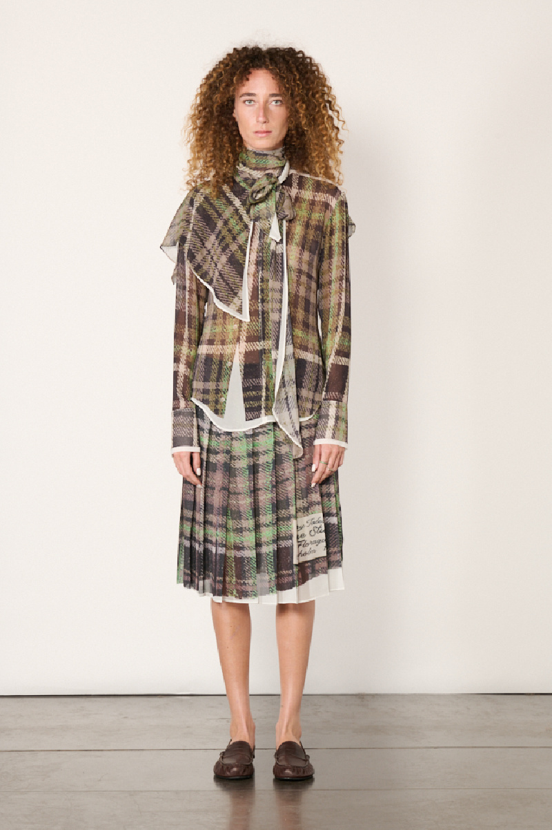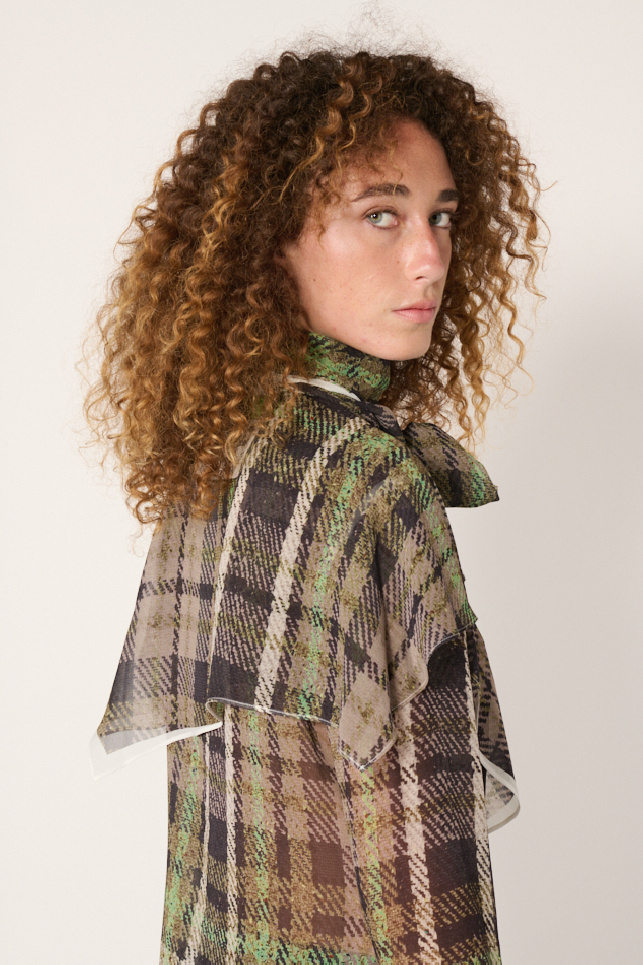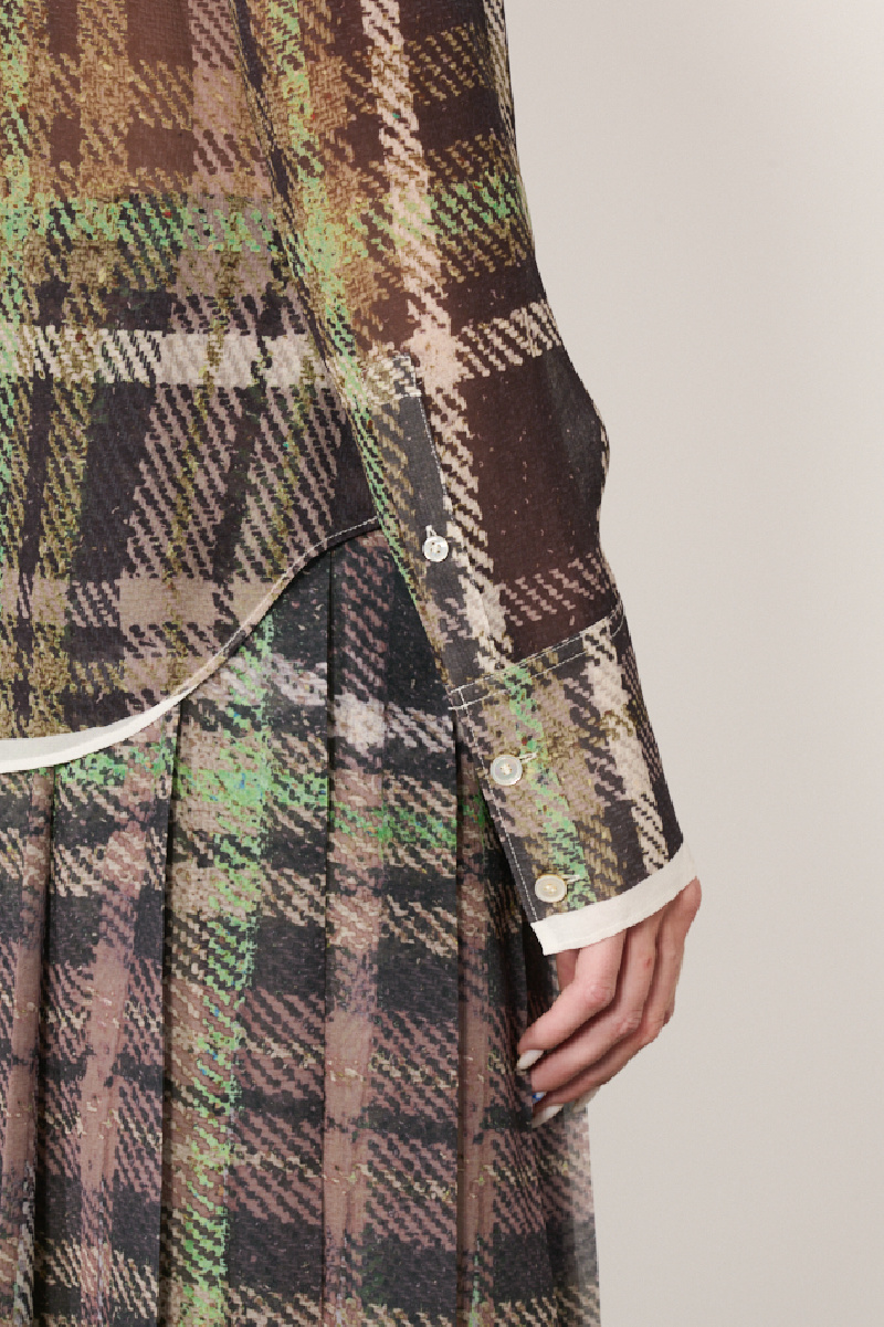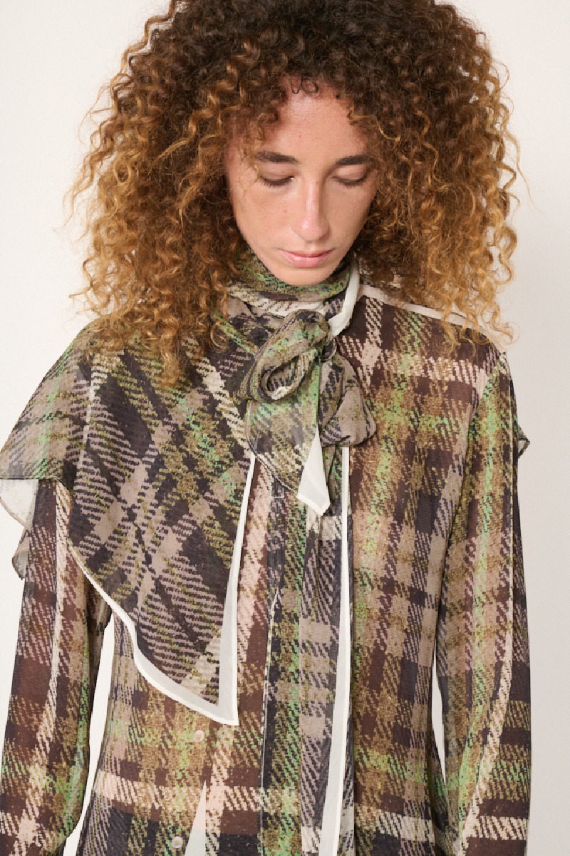 Blouse with a trompe-l'oeil check print in Grey/Green tones, crafted from lightweight silk offering a subtle play of transparency, from Acne Studios.