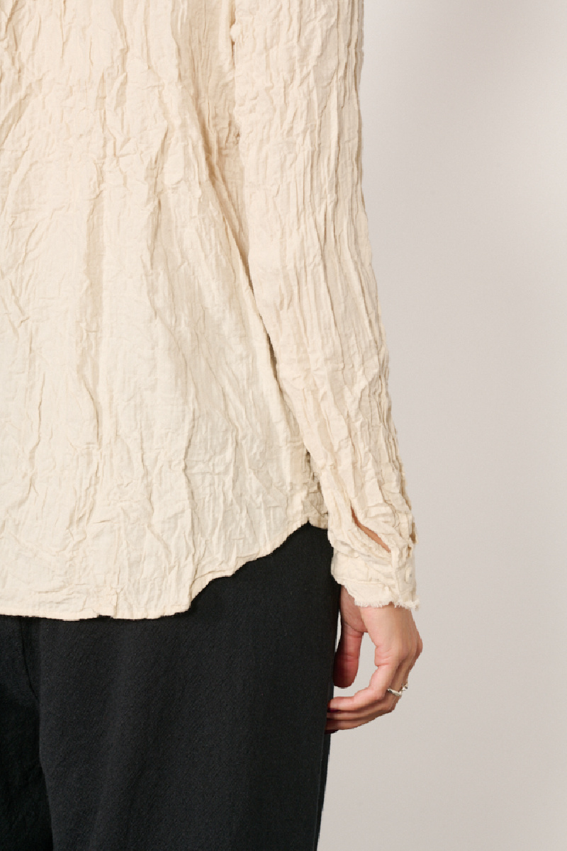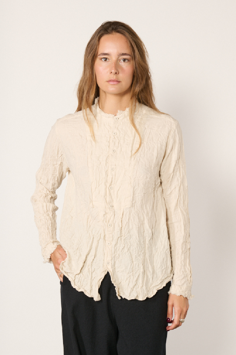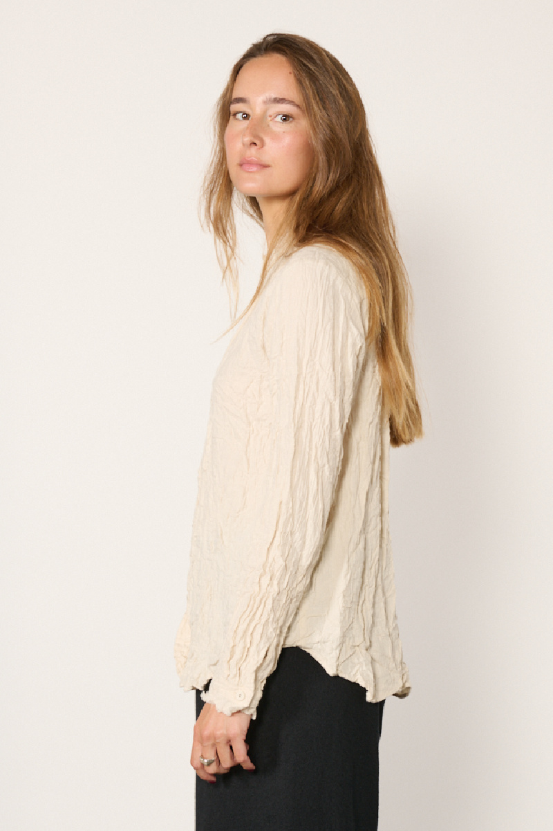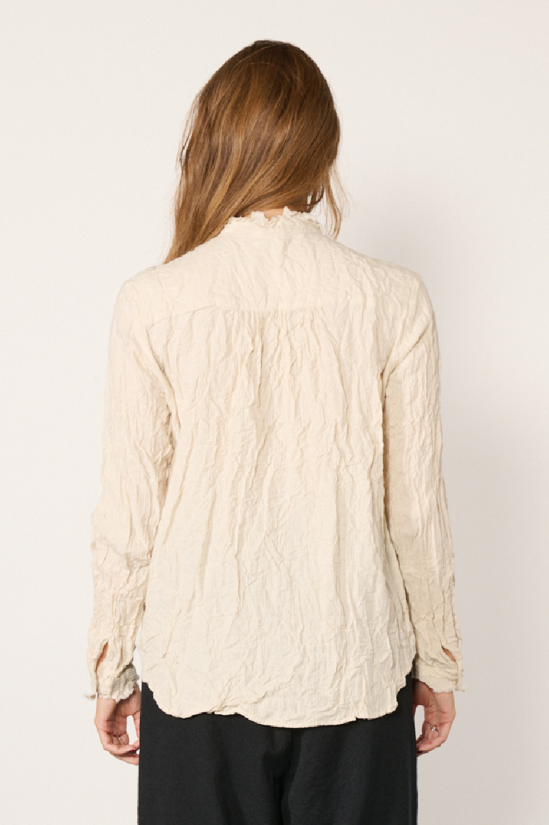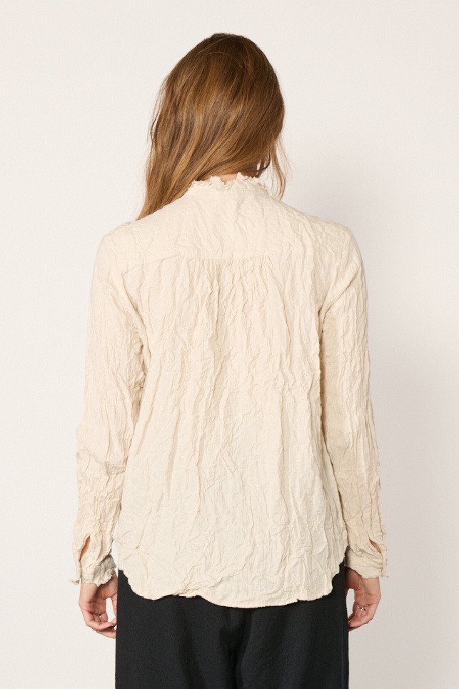 Ivory plain shirring brushed blouse made from lightweight crinkled cotton fabric by Pas de Calais.