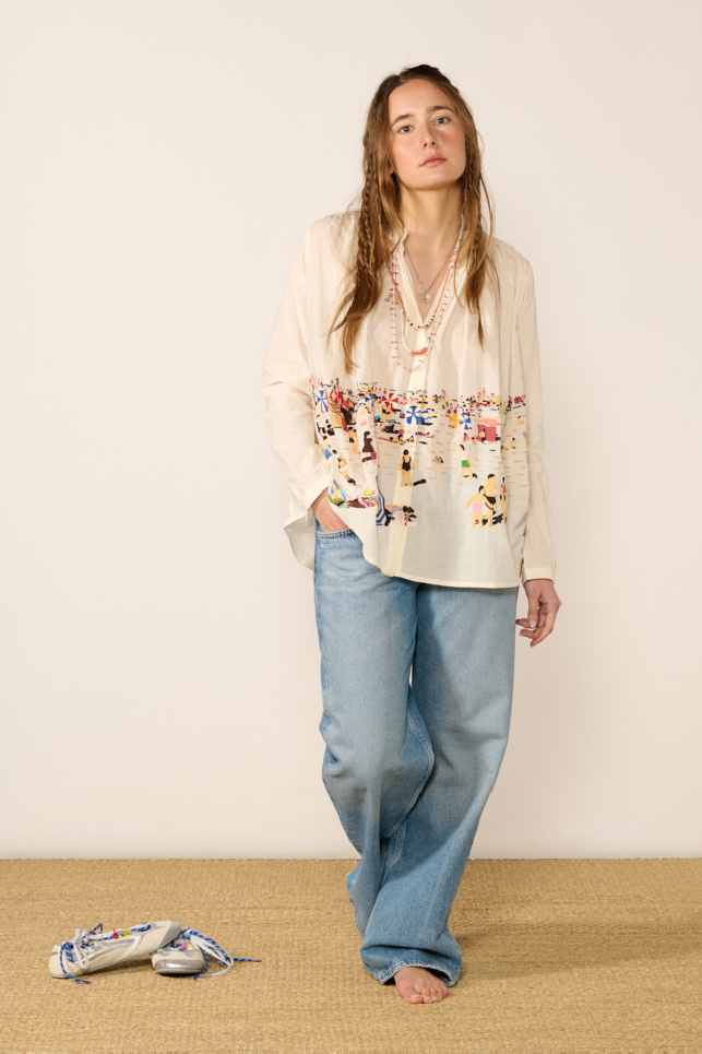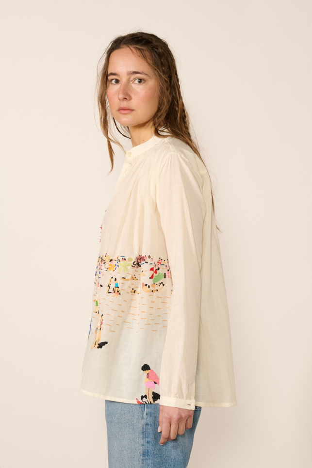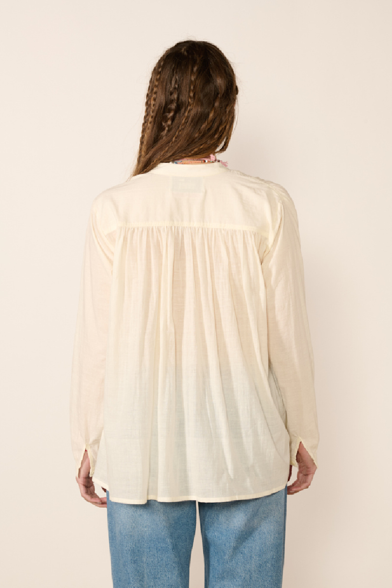 Hand-woven blouse in airy cream-colored khadi cotton and hand-embroidered, from the Mii brand.