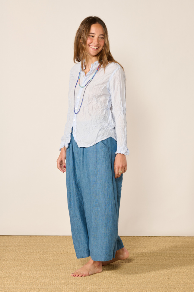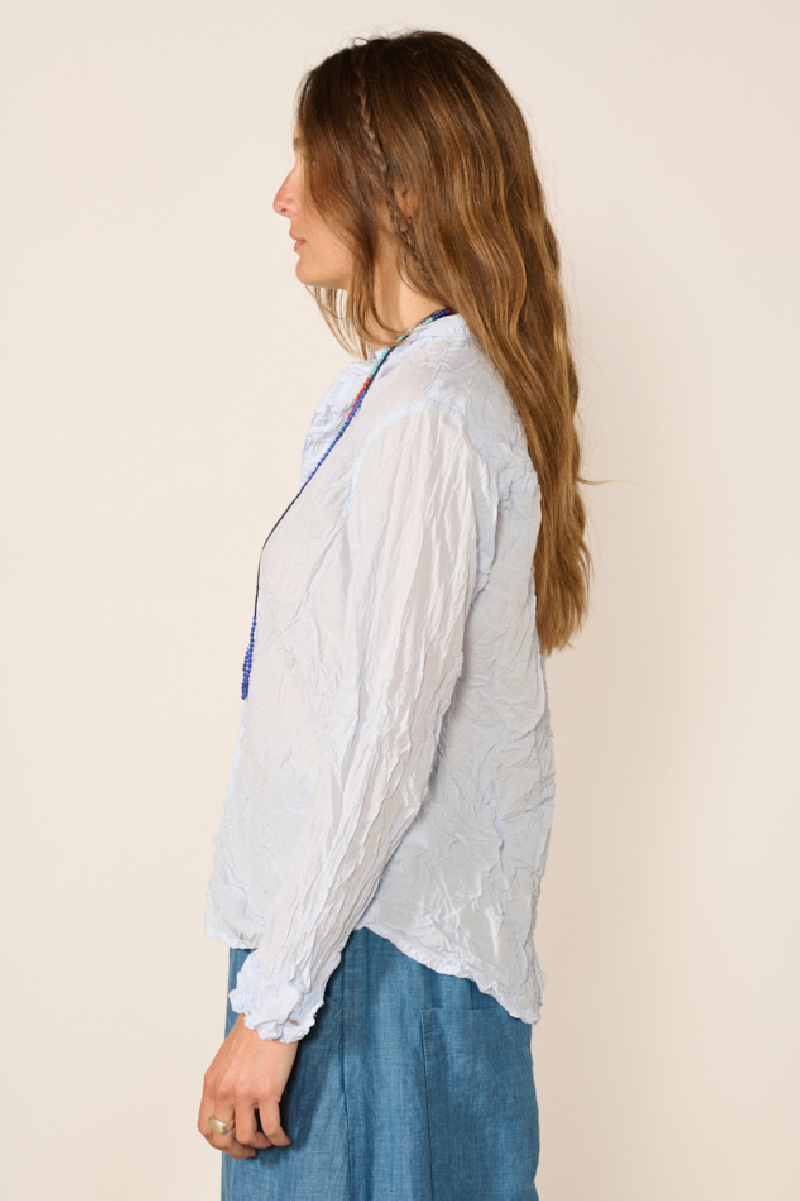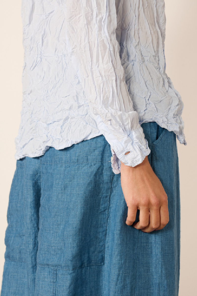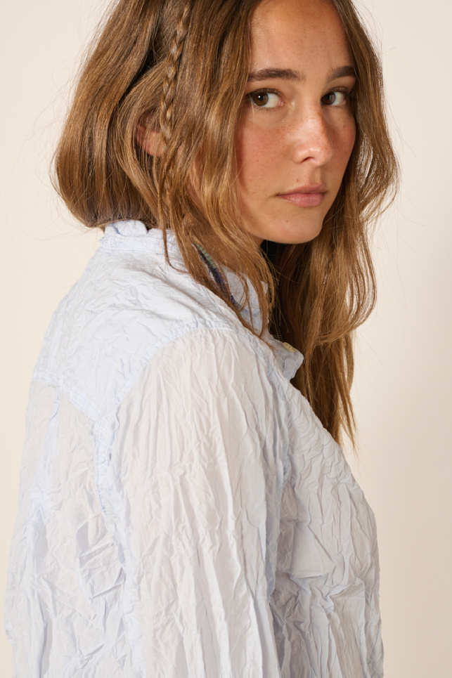 Long sleeve shirt made of light blue washed cotton with a creased effect, from the brand Pas de Calais.