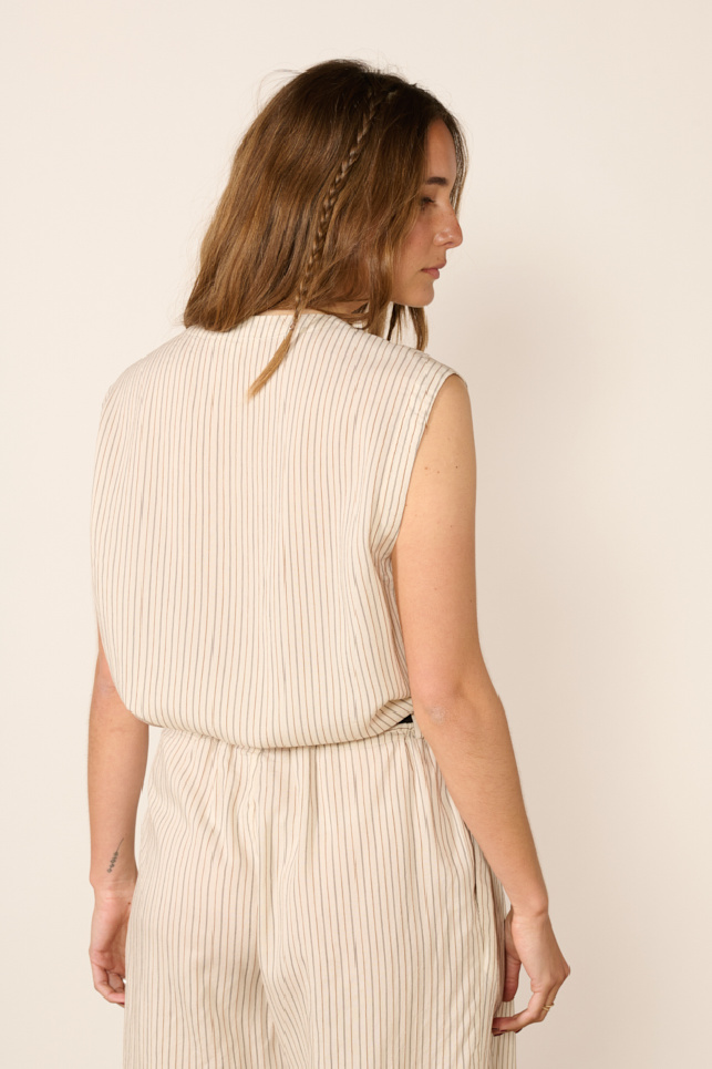Sleeveless top made of natural silk and eco-friendly viscose, adorned with a fine striped pattern in jacquard, from the Italian brand Barena.