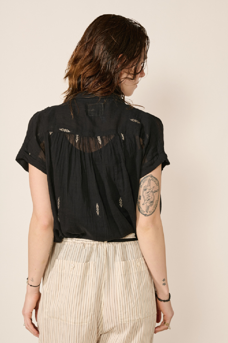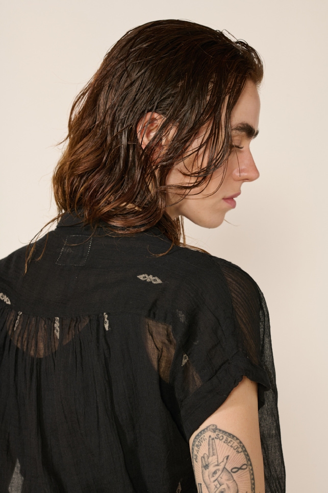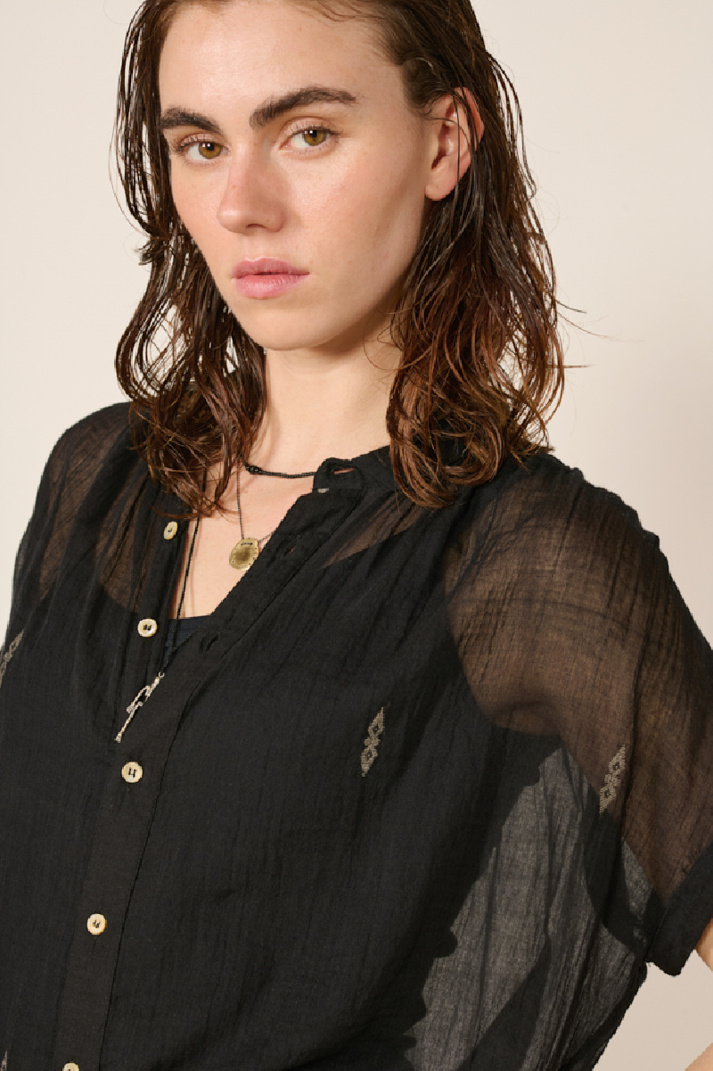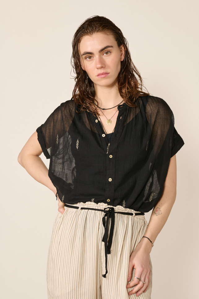 Lightweight short-sleeve shirt in sheer black cotton by Bsbee.