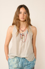 The Perla tank top seduces with its softness and fluidity, an ideal piece to accompany summer days.