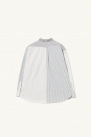 It has a straight and loose fit, with a button-down collar, front closure, rounded hem and chest pocket.