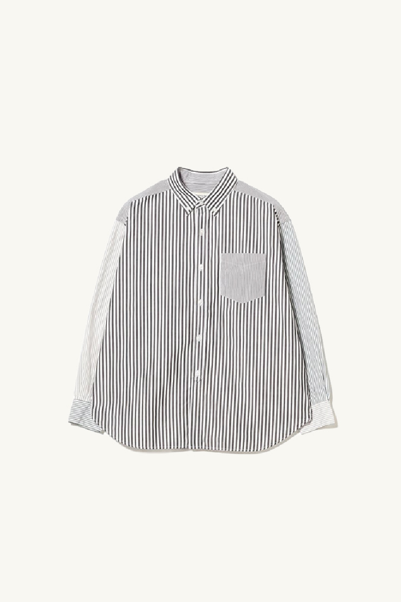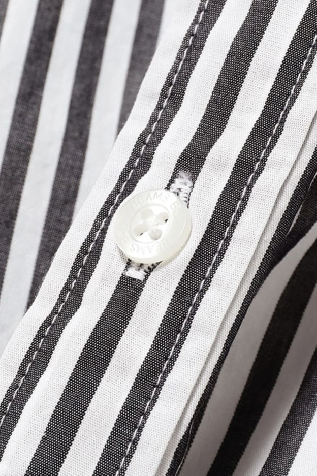 Long-sleeved shirt made of green, black and mole striped cotton from the brand Beams Boy.