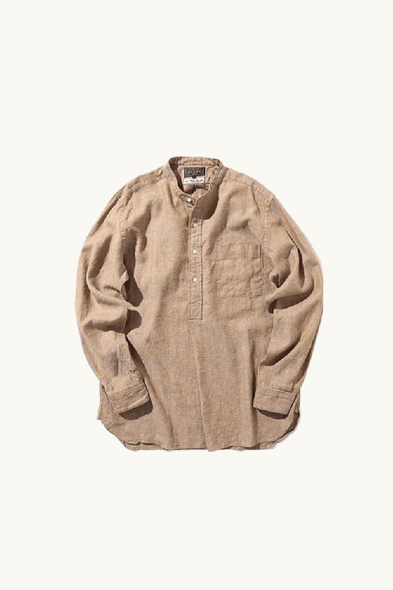 Shirt made in a mix of beige cotton and linen with herringbone pattern, from the brand Beams+.