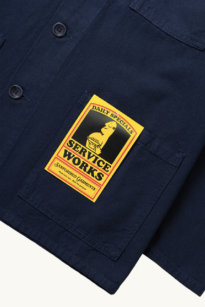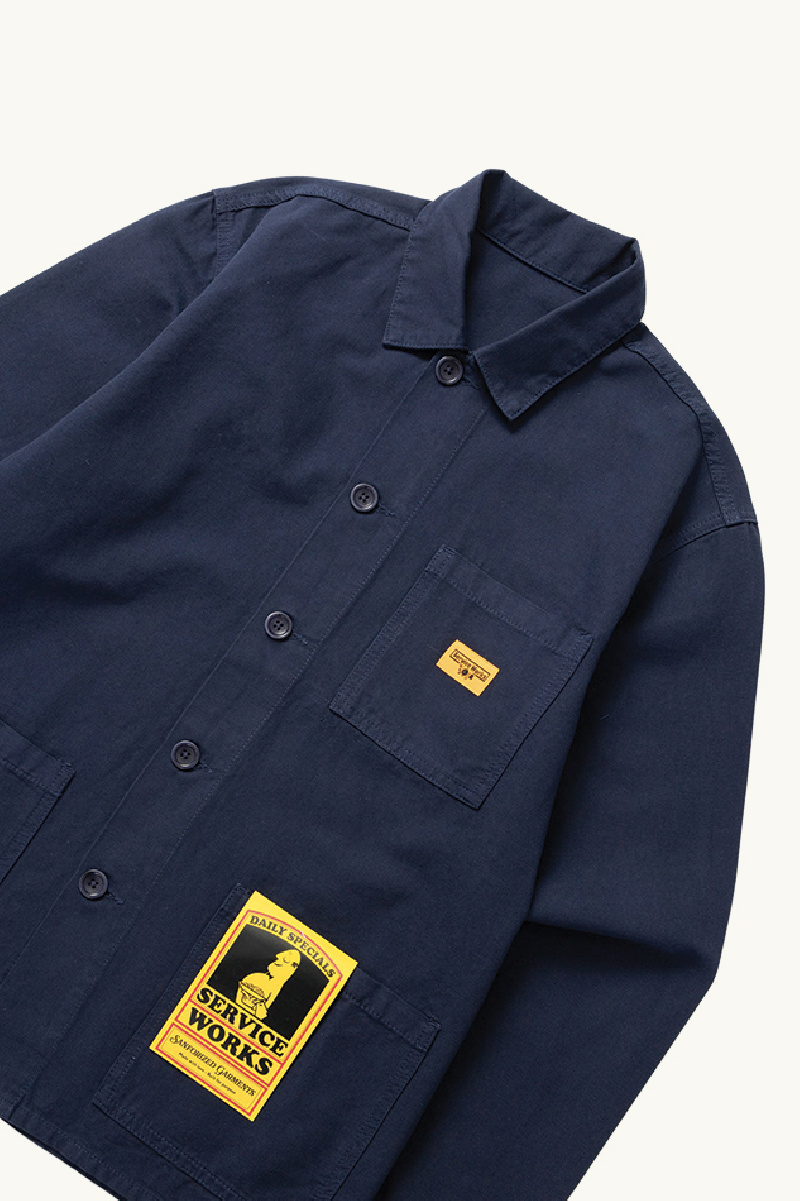 A small yellow label with the brand’s logo is sewn onto the chest pocket.