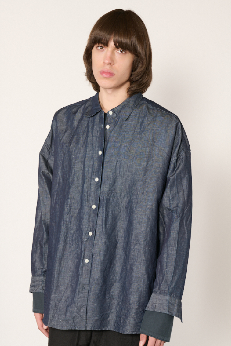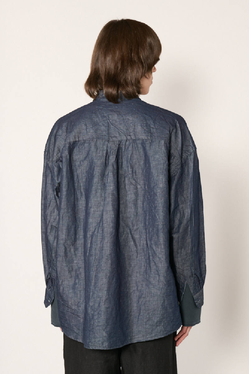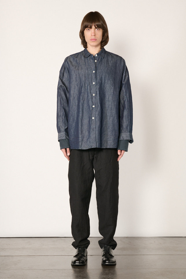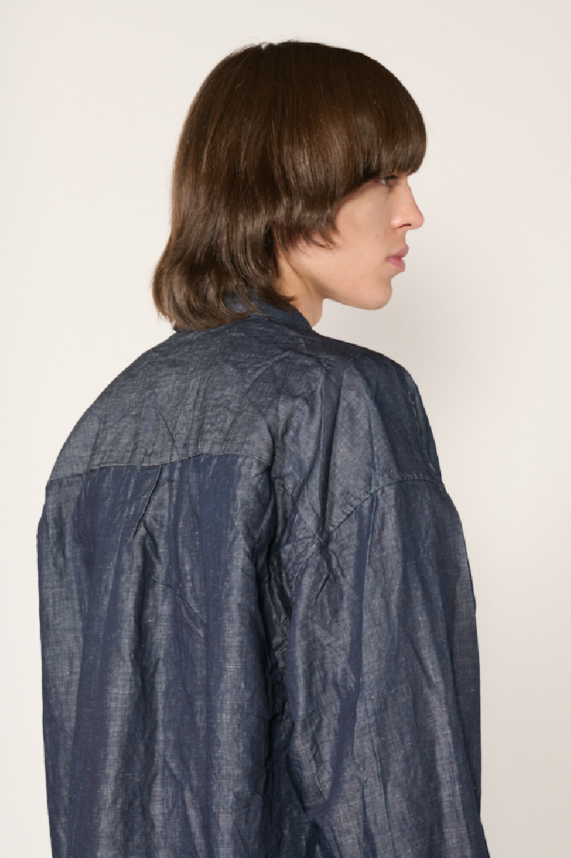 Shirt made from washed linen denim, giving it a slightly shiny and textured look, from the Casey Casey brand.