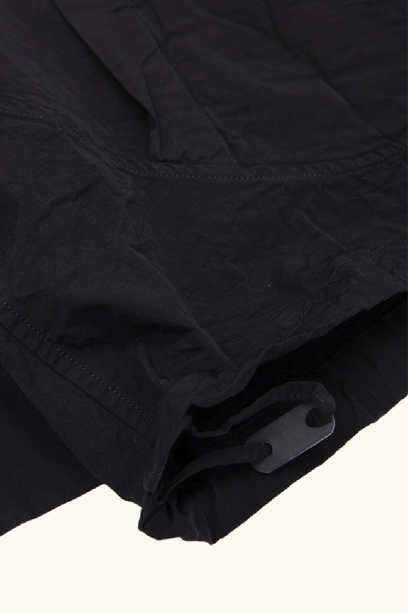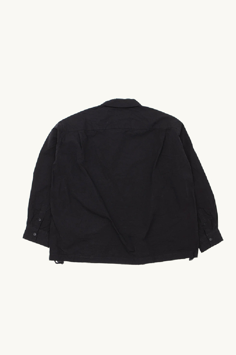 Black shirt, made from washed "paper cot" cotton, by the brand Casey Casey.