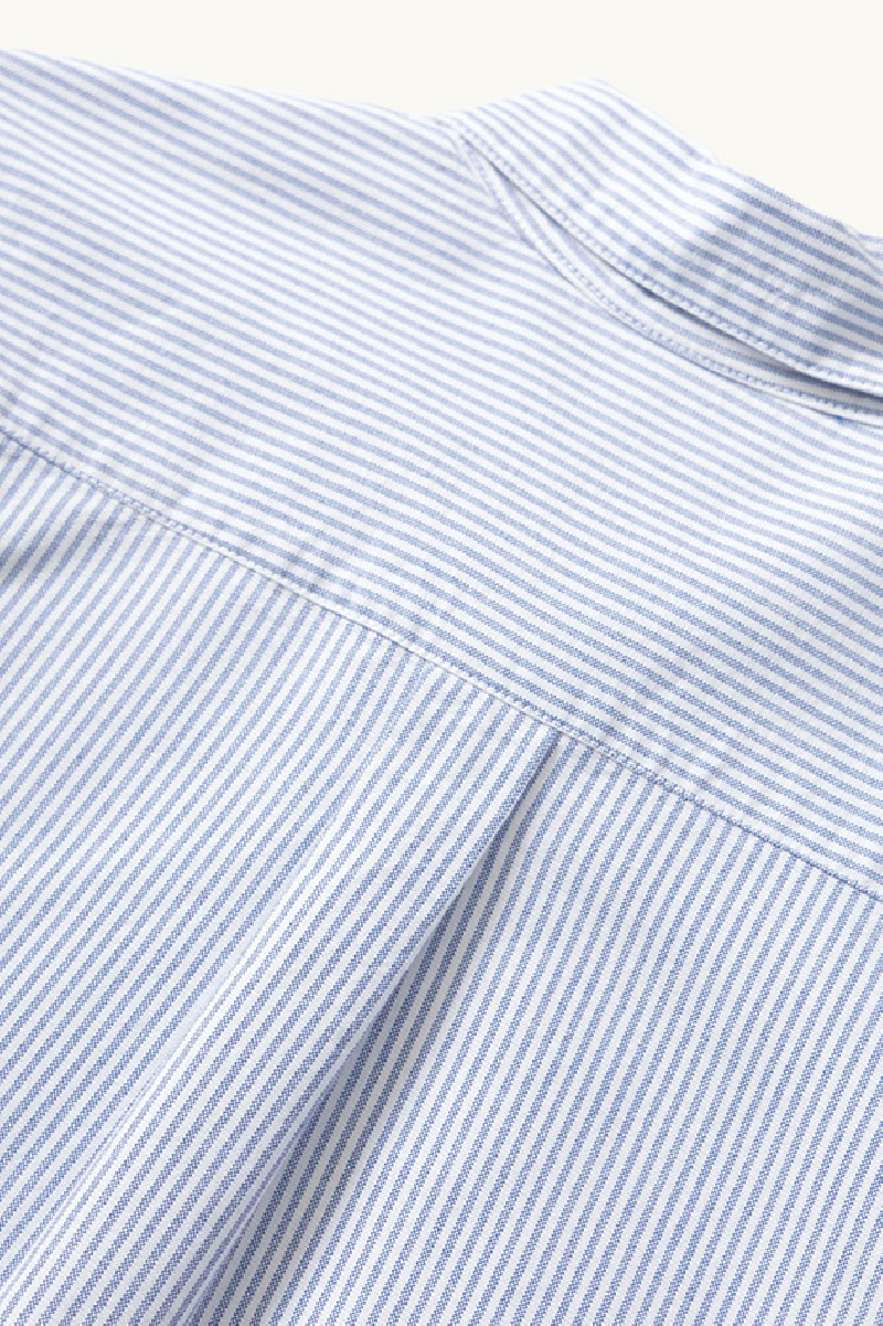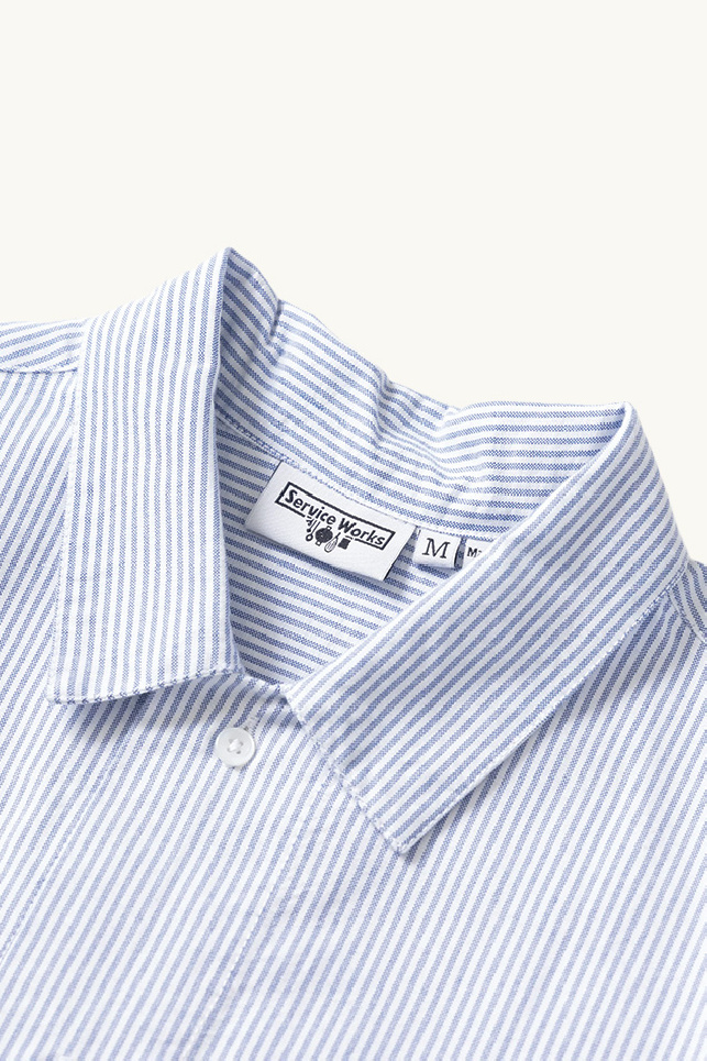 Blue striped shirt, crafted from organic cotton poplin, by Service Works.
