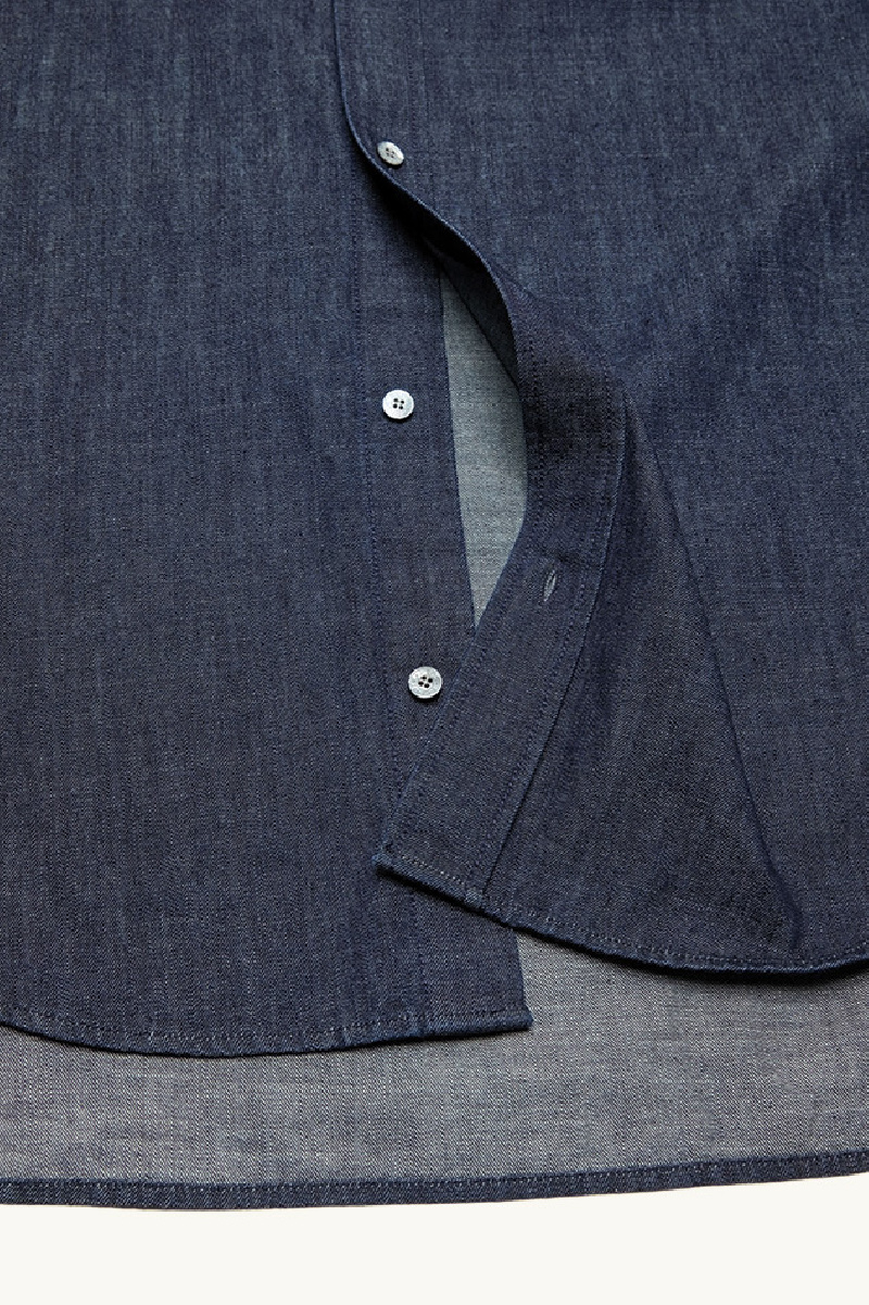 It features a relaxed, loose fit with a classic shirt collar, a buttoned closure, and subtle tone-on-tone embroidery on the chest for a refined, understated finish.
