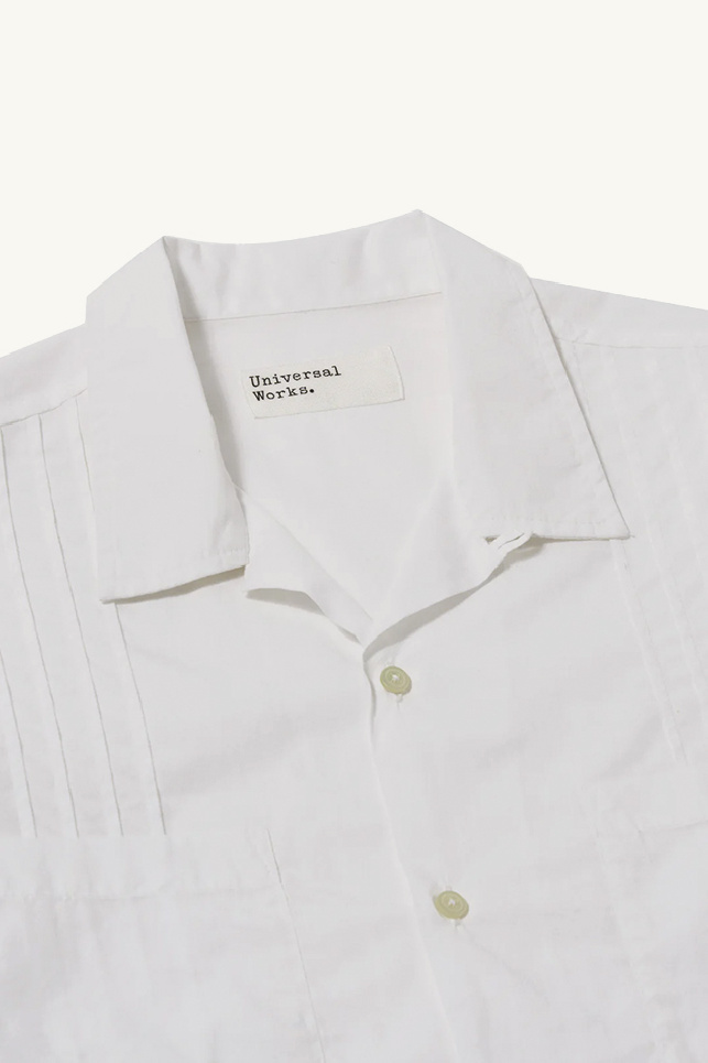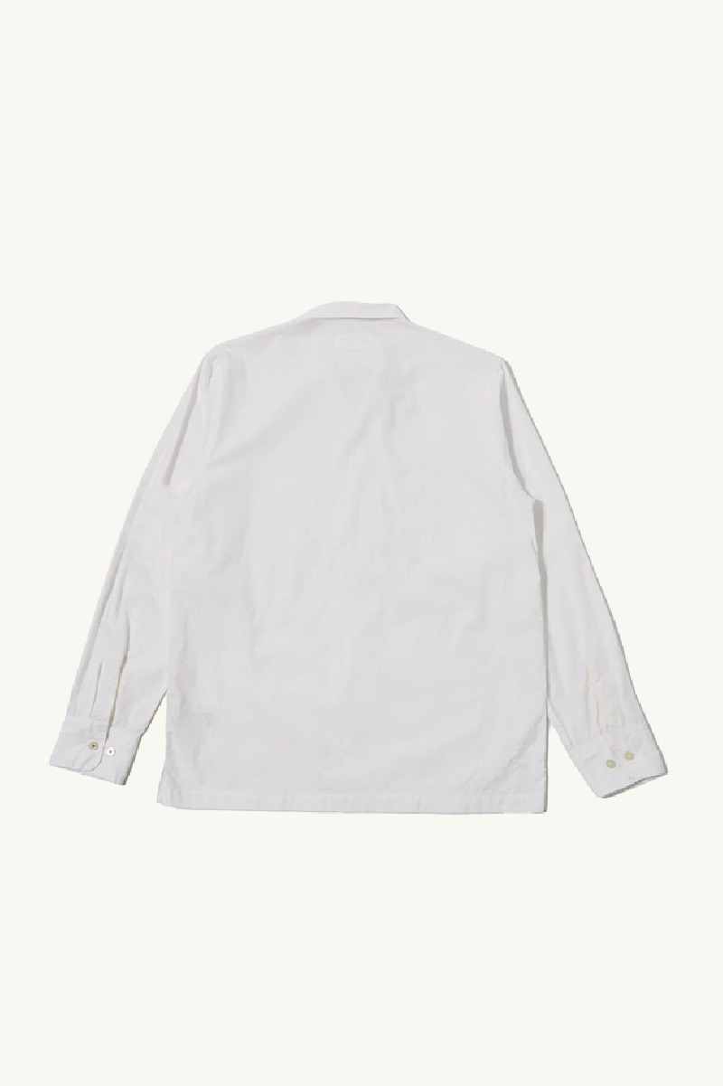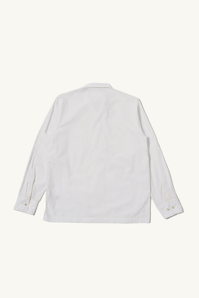 Its Cuban collar with buckle closure reinforces its retro look, while its four patch pockets on the front give it a distinctly utilitarian feel.