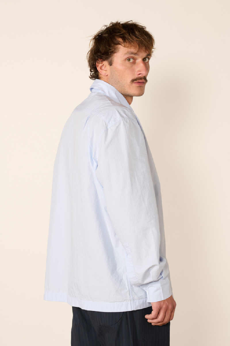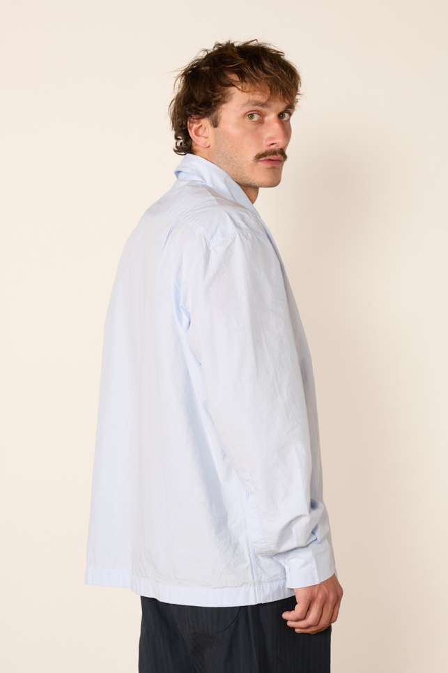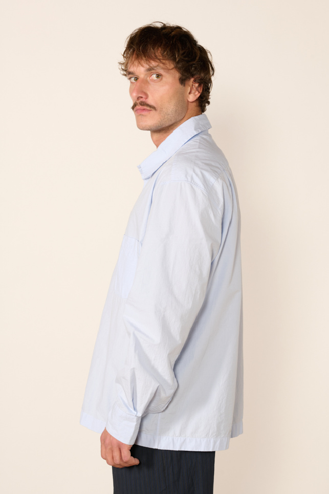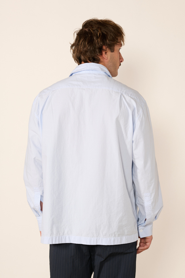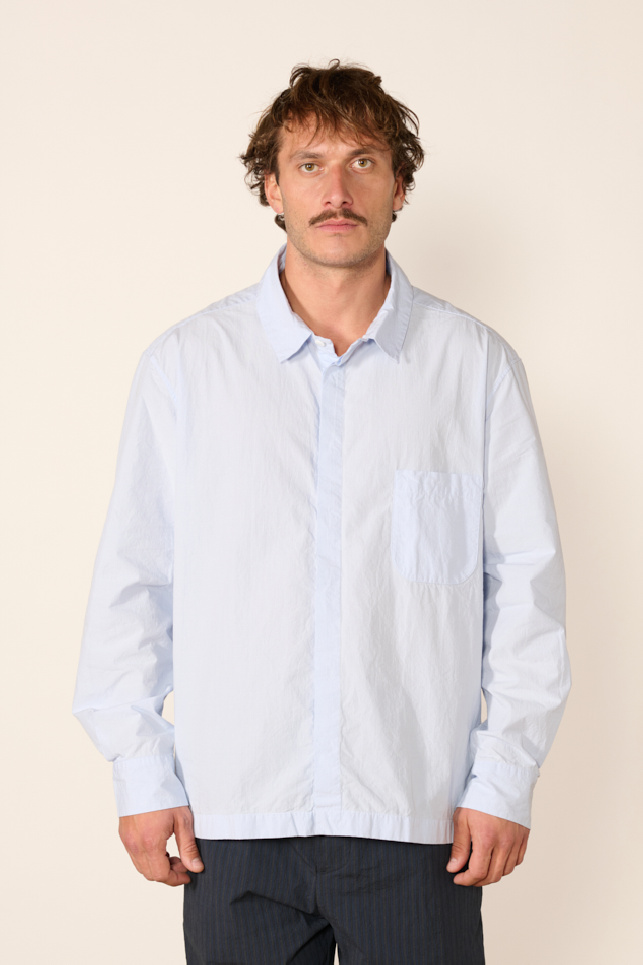 Micro-check overshirt in blue cotton crepe by Bergfabel.