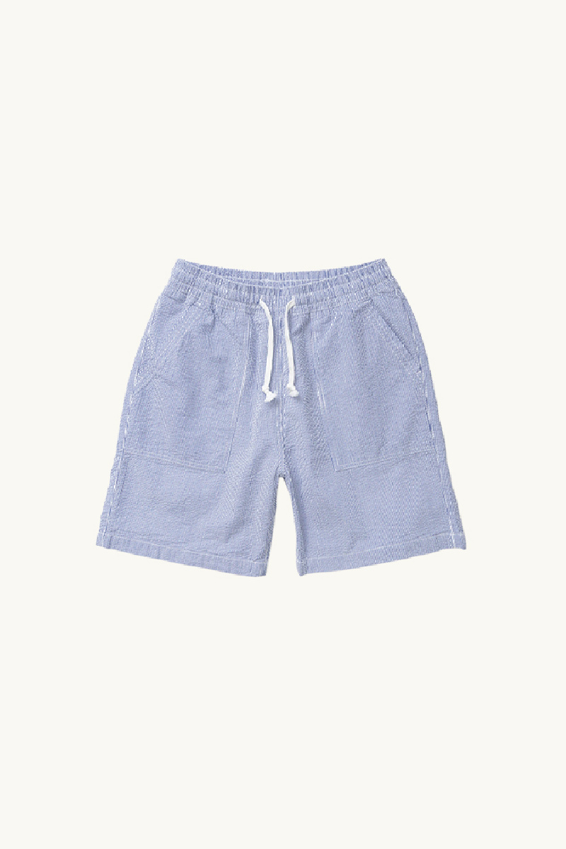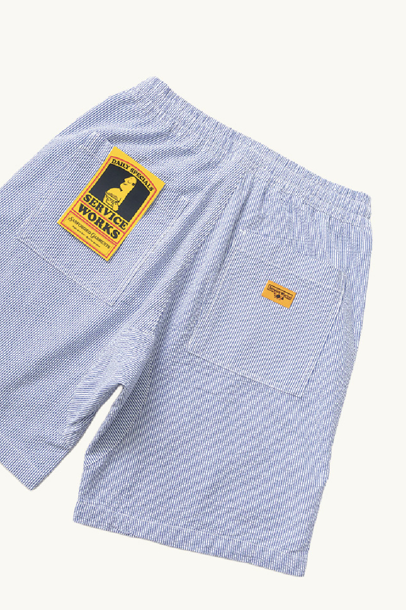 Striped shorts in white and blue textured cotton from Service Works.