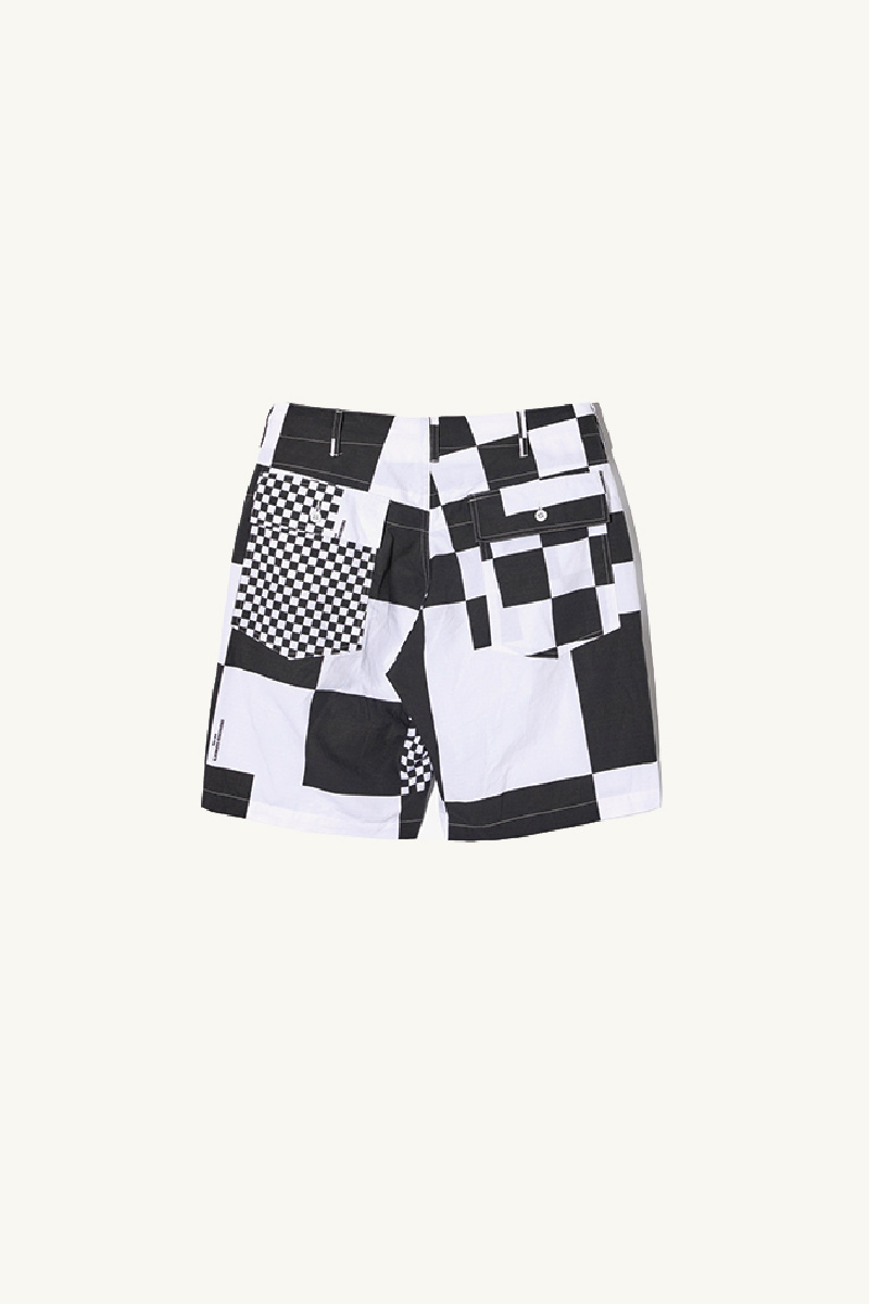 Black and white cotton checkered shorts from the brand Engineered Garments.