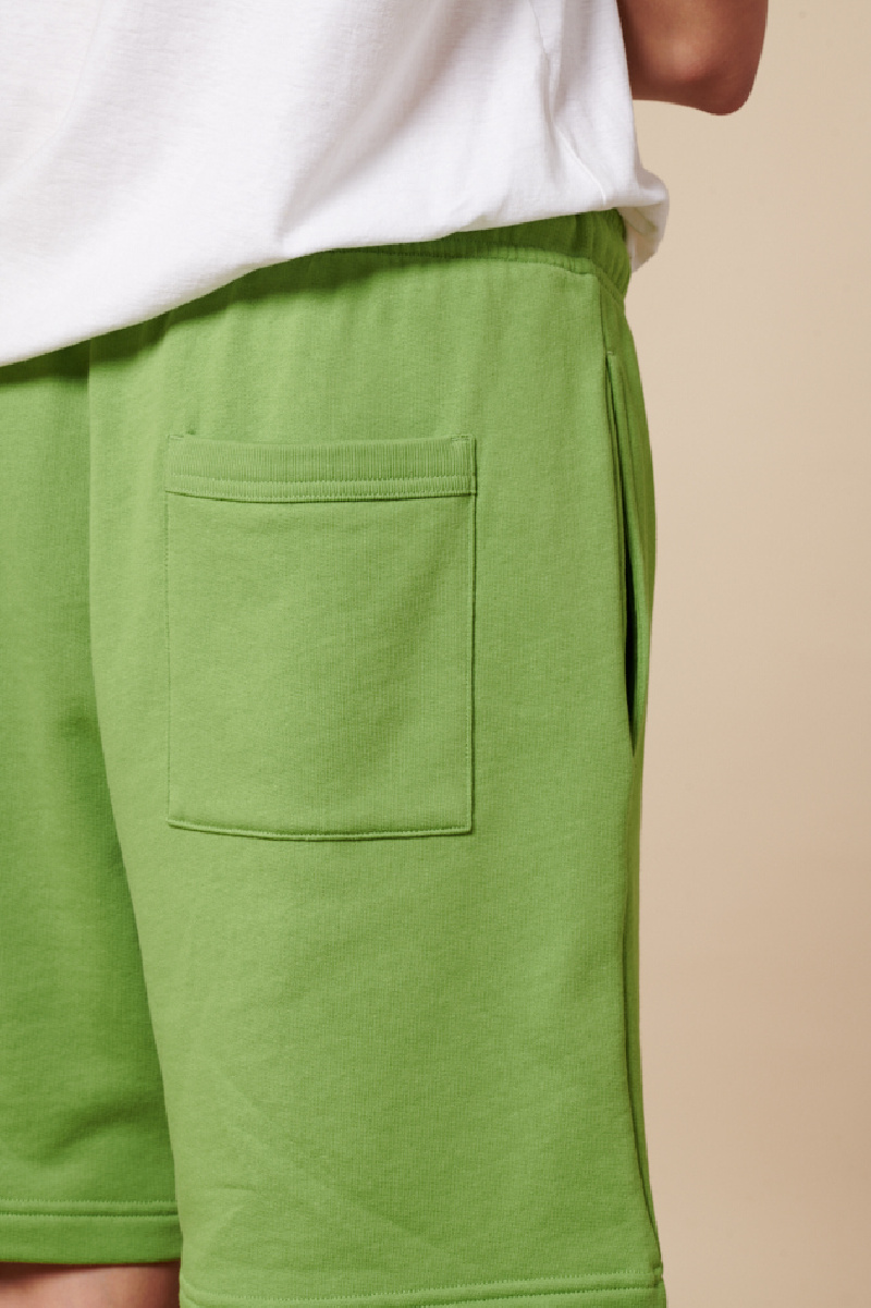 Jersey shorts, Acne Studios, green, in organic cotton, straight cut, elasticated waist with drawstring, mid-thigh length, front micro logo patch, two side pockets and patch back pocket.