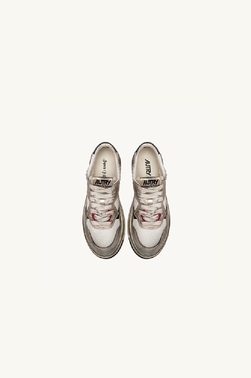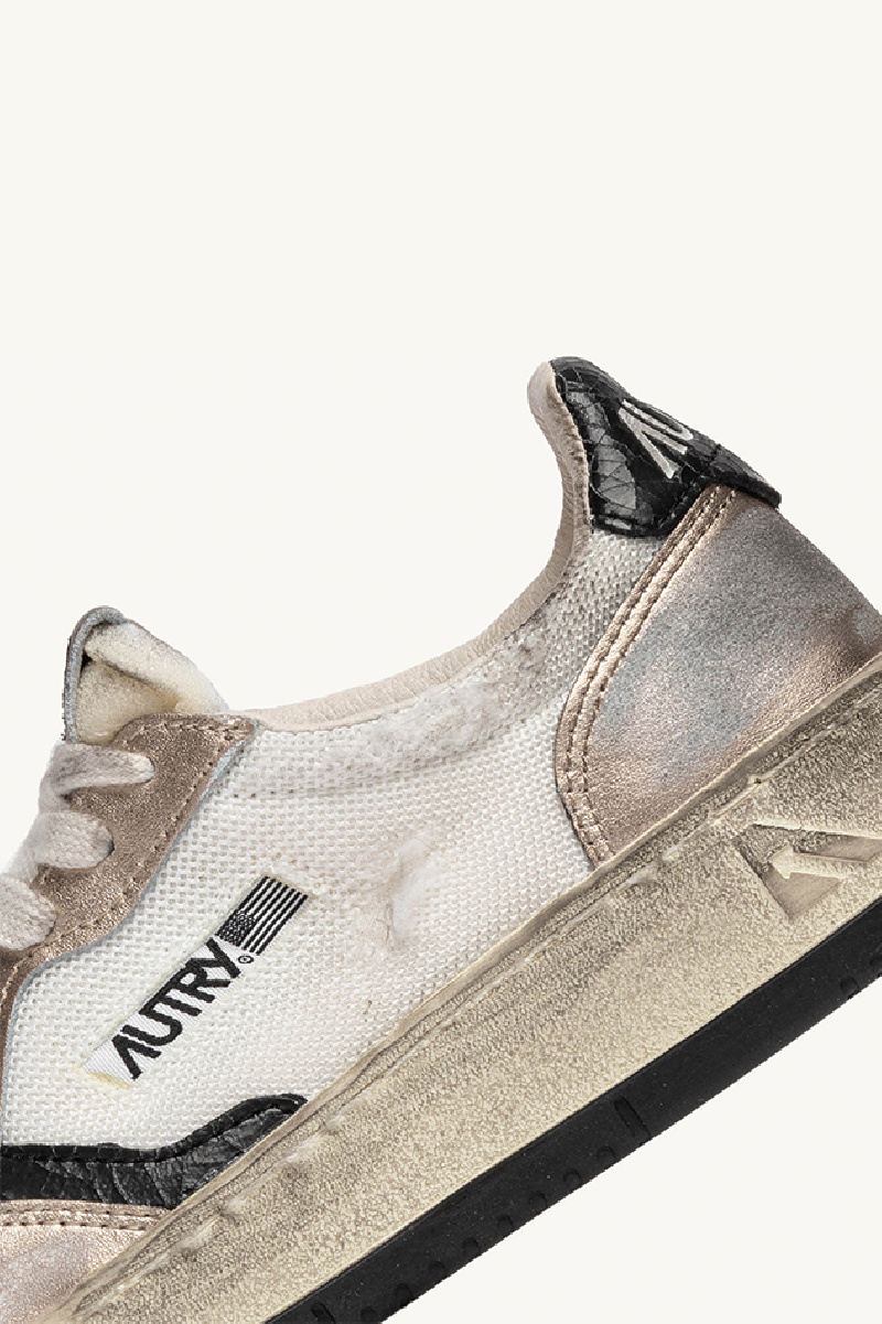 Autry sneakers, Super Vintage Low model, in supple gold leather and white mesh fabric, with used effect.
