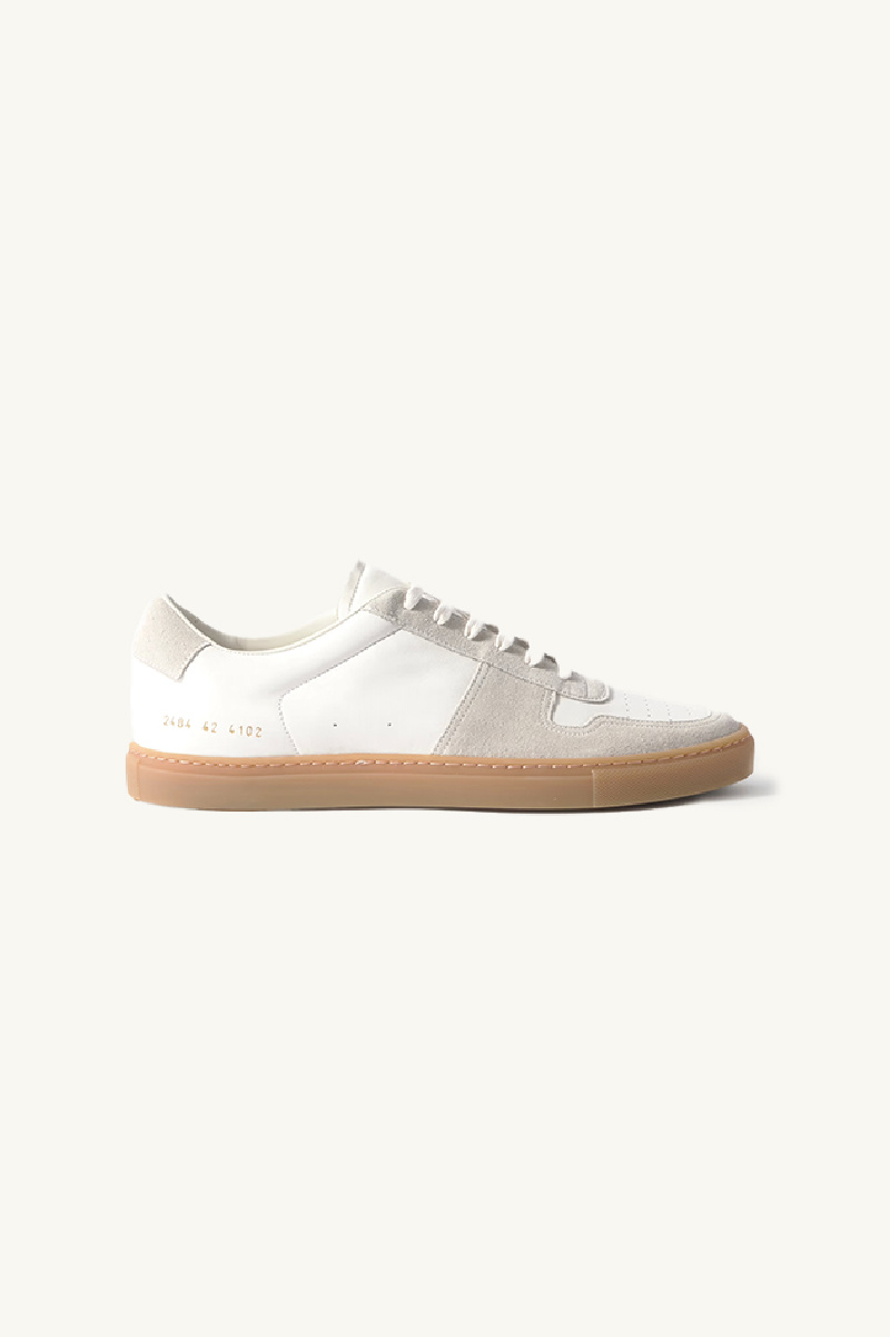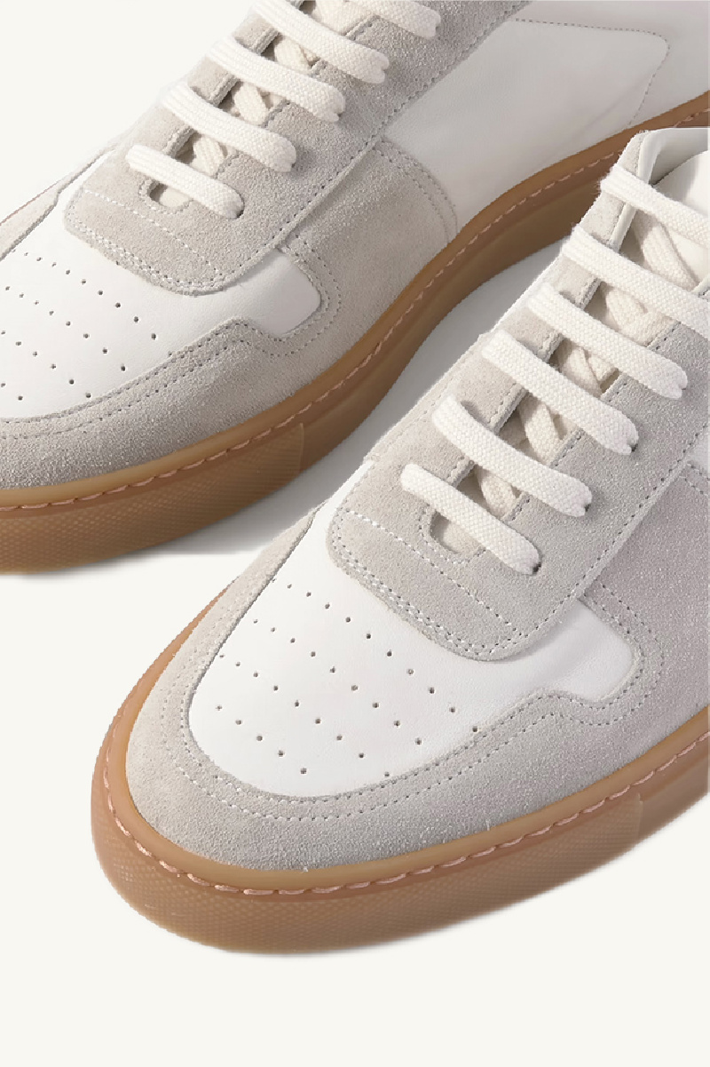 Bball Duo Slim sneakers in white leather and taupe suede inserts, from the brand Common Projects.