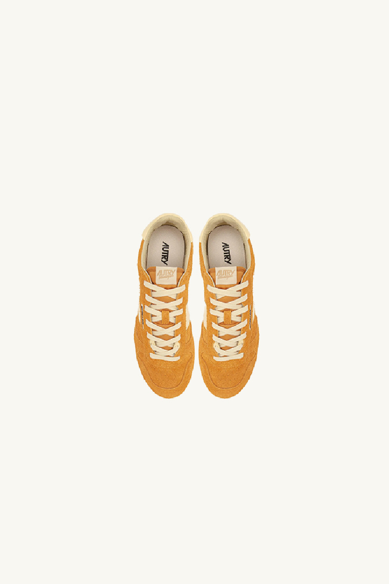 Autry Wingspin sneakers in soft suede with «used» effect and leather Cadmium and Rutabaga.