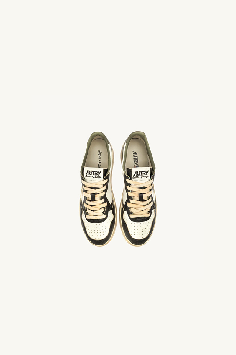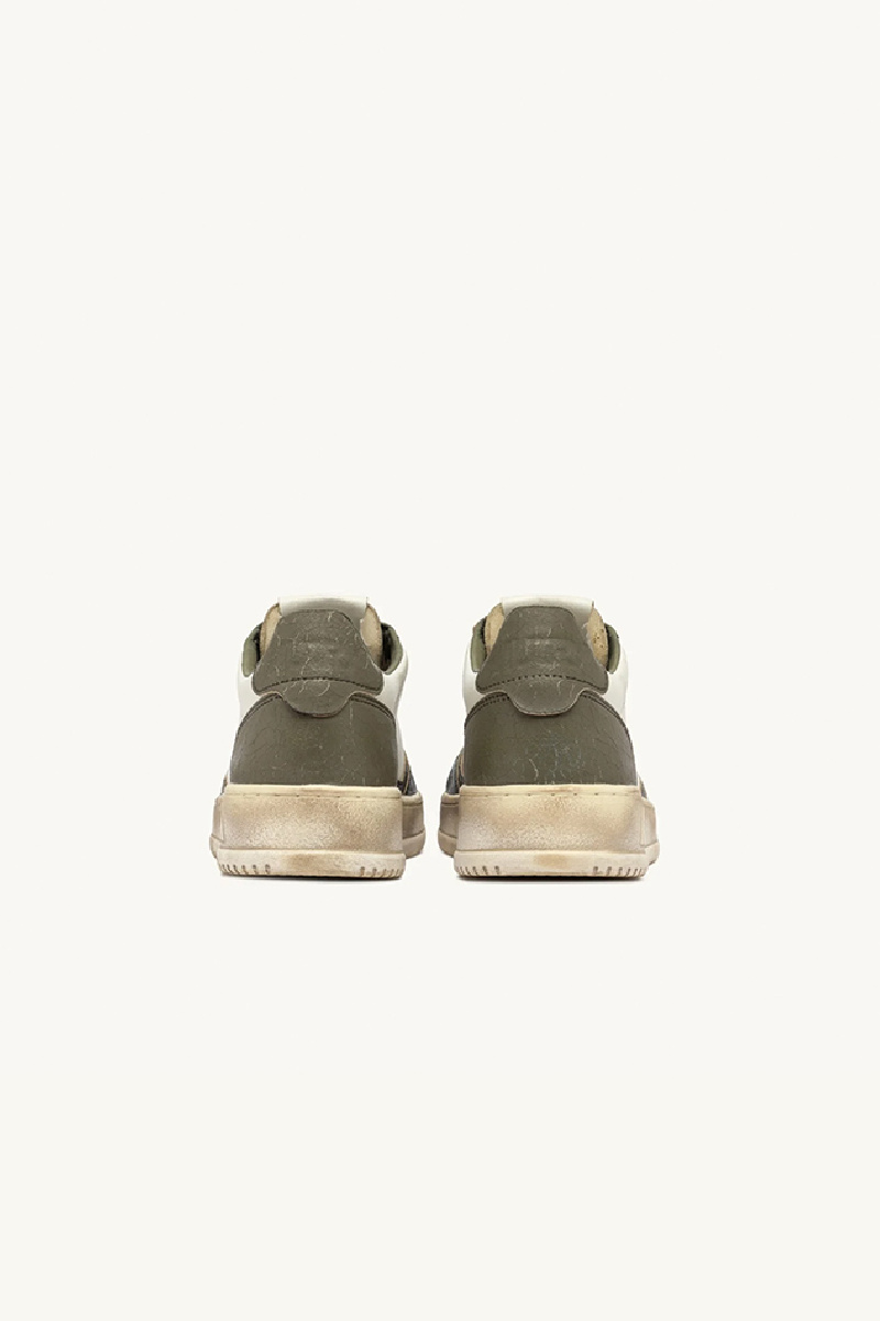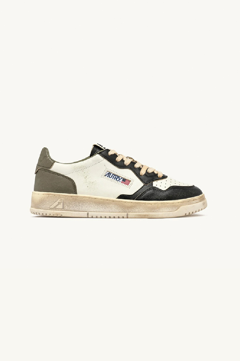 Autry sneakers, Super Vintage Low model, in white, green and black leather with used effect.