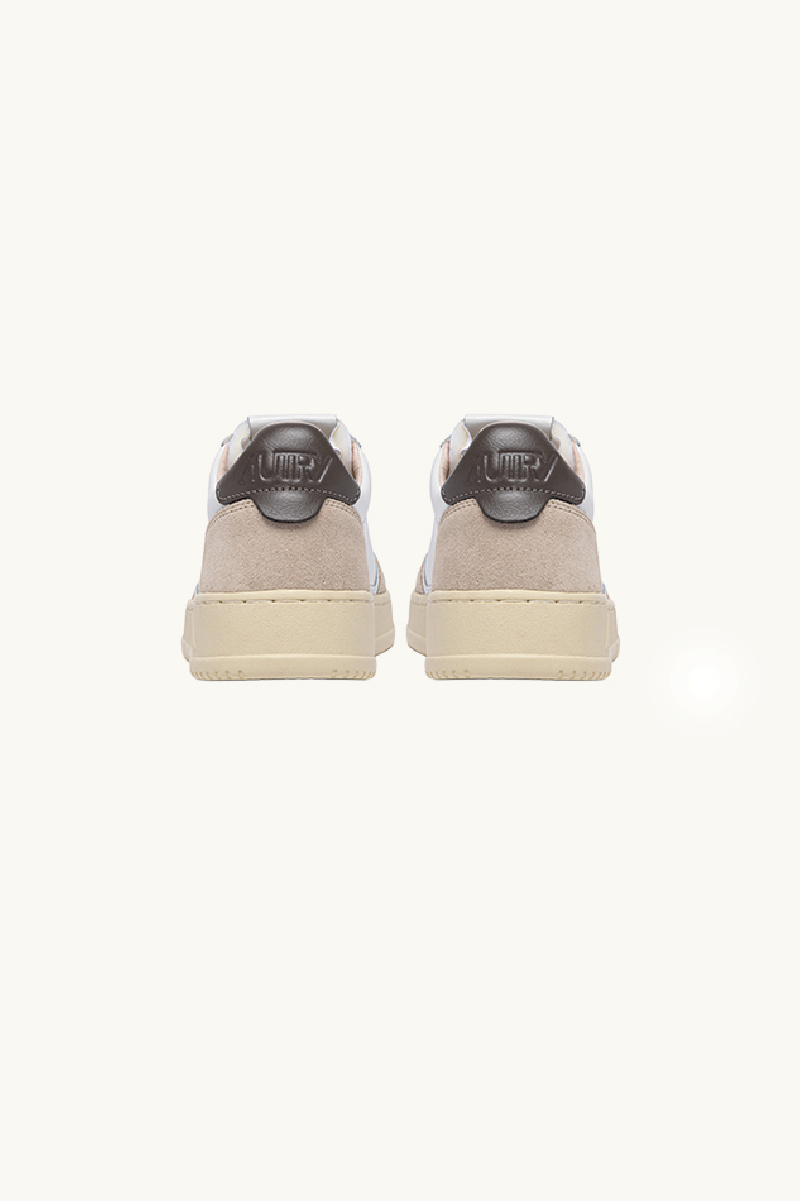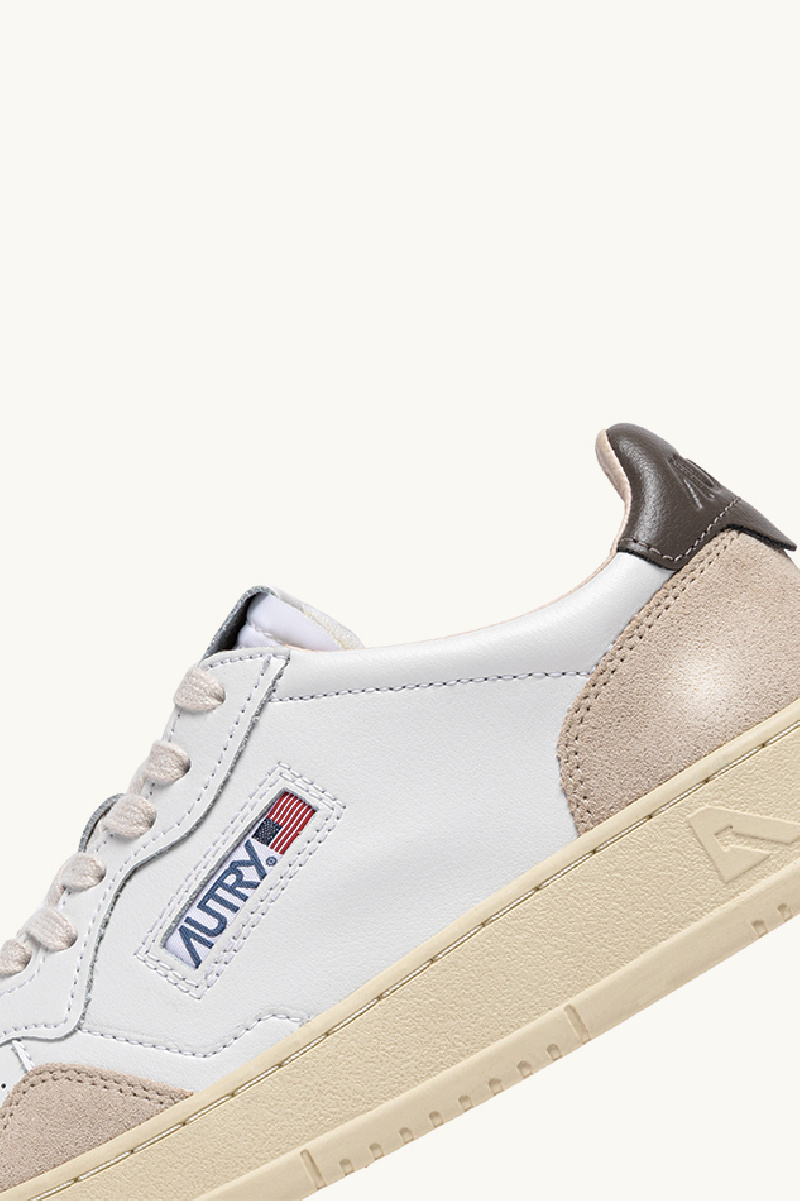 AUTRY Medalist low sneakers in white leather and beige suede.