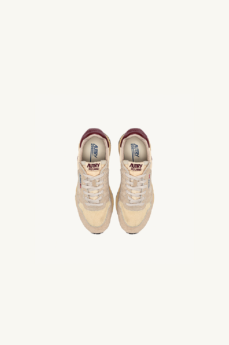 Reelwind Low sneakers from the brand Autry, ecru, in elegant suede and durable nylon, leather details in Ruby Wine color.