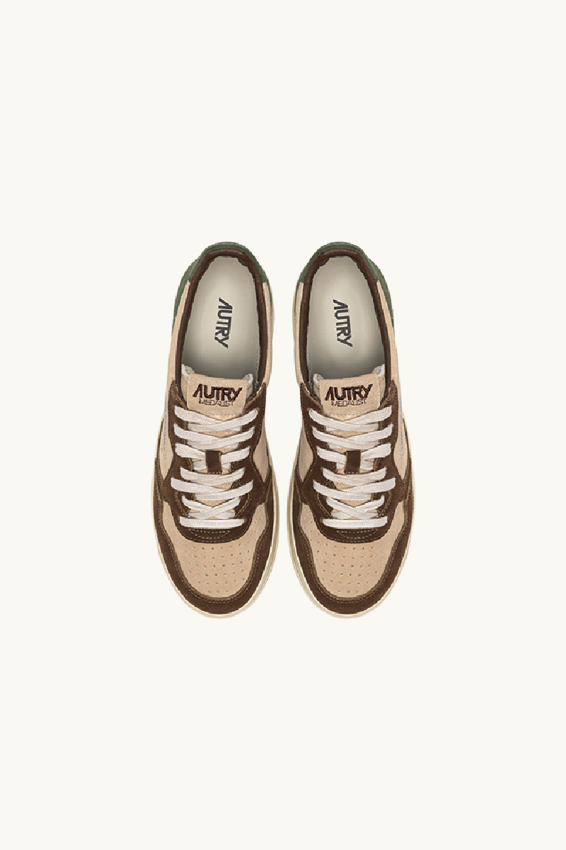 The Medalist design features a perforated forefoot, rubber sole, flat cotton laces and an embroidered label sewn onto the tongue.