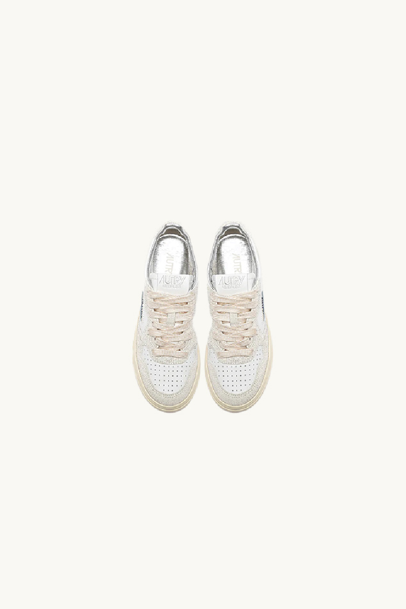 Medalist Low White Leather Sneakers with White Glitter from Autry.