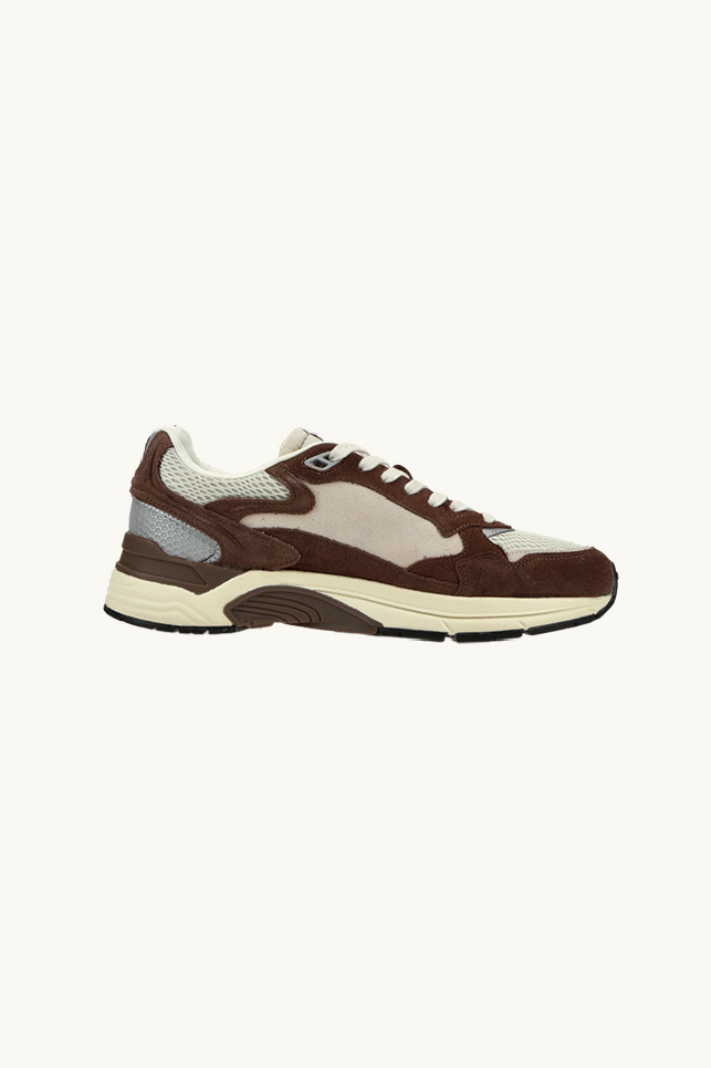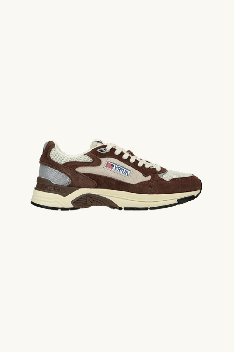 Hyperway sneakers by Autry, made of brown/beige suede and white mesh.