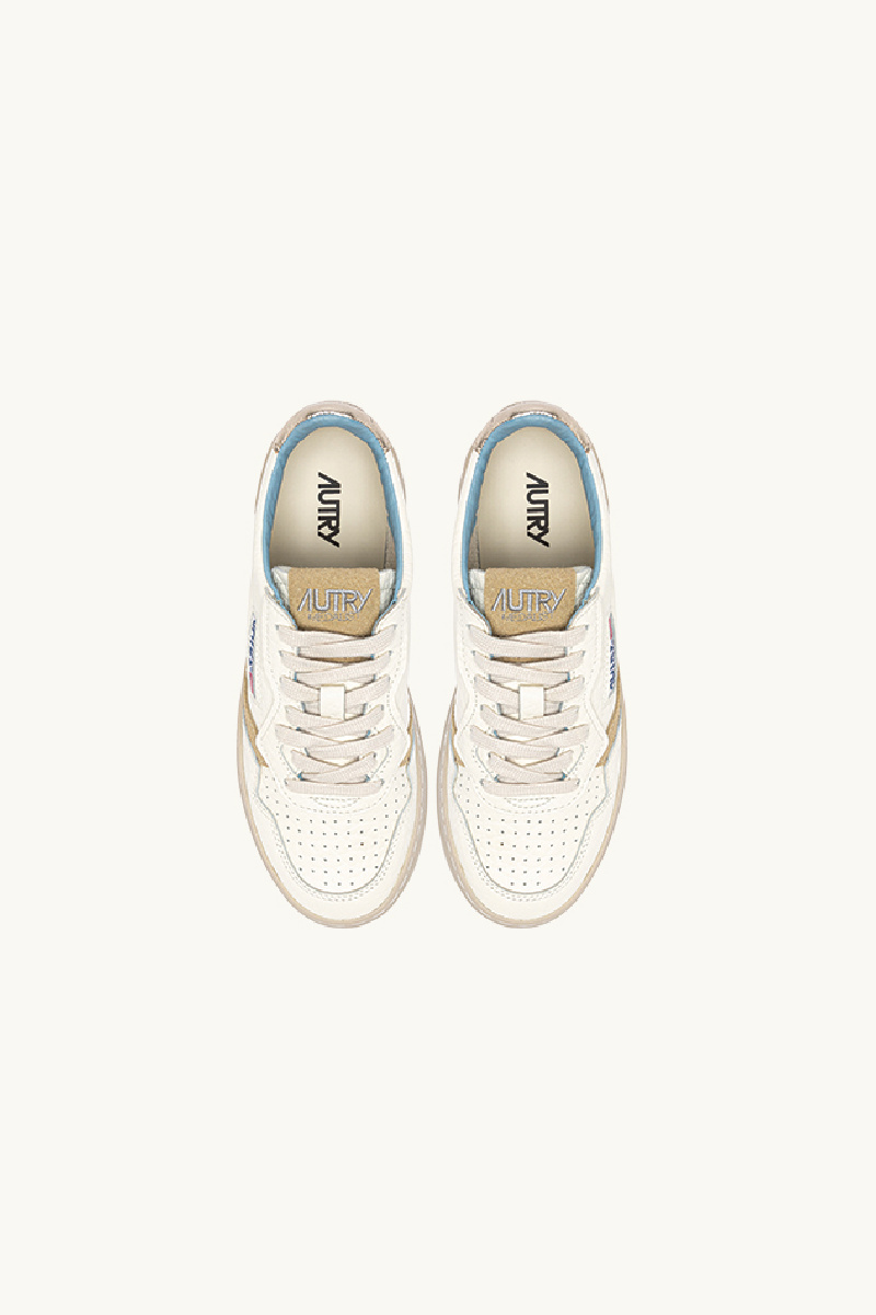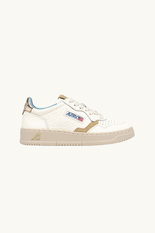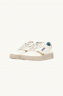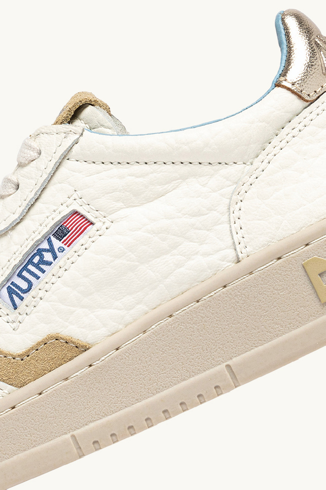 The design is completed with flat cotton laces, a beige nubuck tongue adorned with a label and a blue embroidered logo, as well as a platinum heel counter highlighted with the brand’s iconic logo.