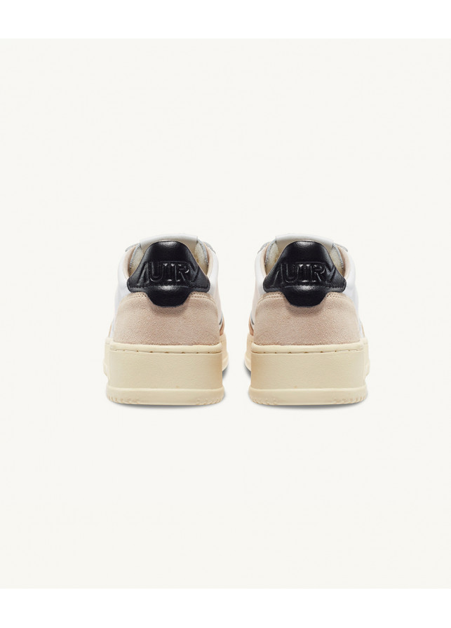 They feature beige suede overlays and a padded black leather heel tab. They also come with a perforated toe box, a rubber sole, and cotton lace-up fastening.