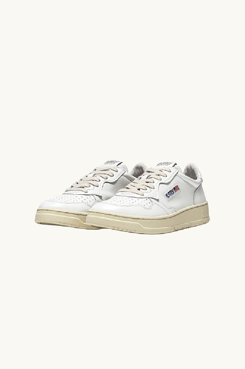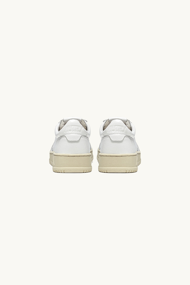 These sneakers feature an elegant monochrome design with a perforated toe box, rubber sole, cotton laces, branded tongue label, and a white leather heel tab adorned with the brand’s iconic logo.